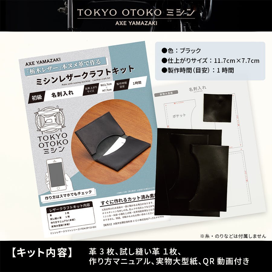 ミシン レザークラフトキット メガネケース 黒 革 ブラック TOKYO OTOKO ミシン OM-01 初心者 簡単 日本製 栃木レザー 小物 ハンドメイド 本革 ヌメ革 クラフト プレゼント ギフト 革縫い レザー オススメ みしん 裁縫男子 アックスヤマザキ 直線縫い アンティークミシン