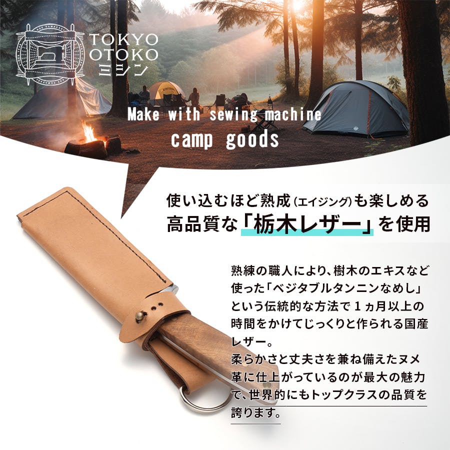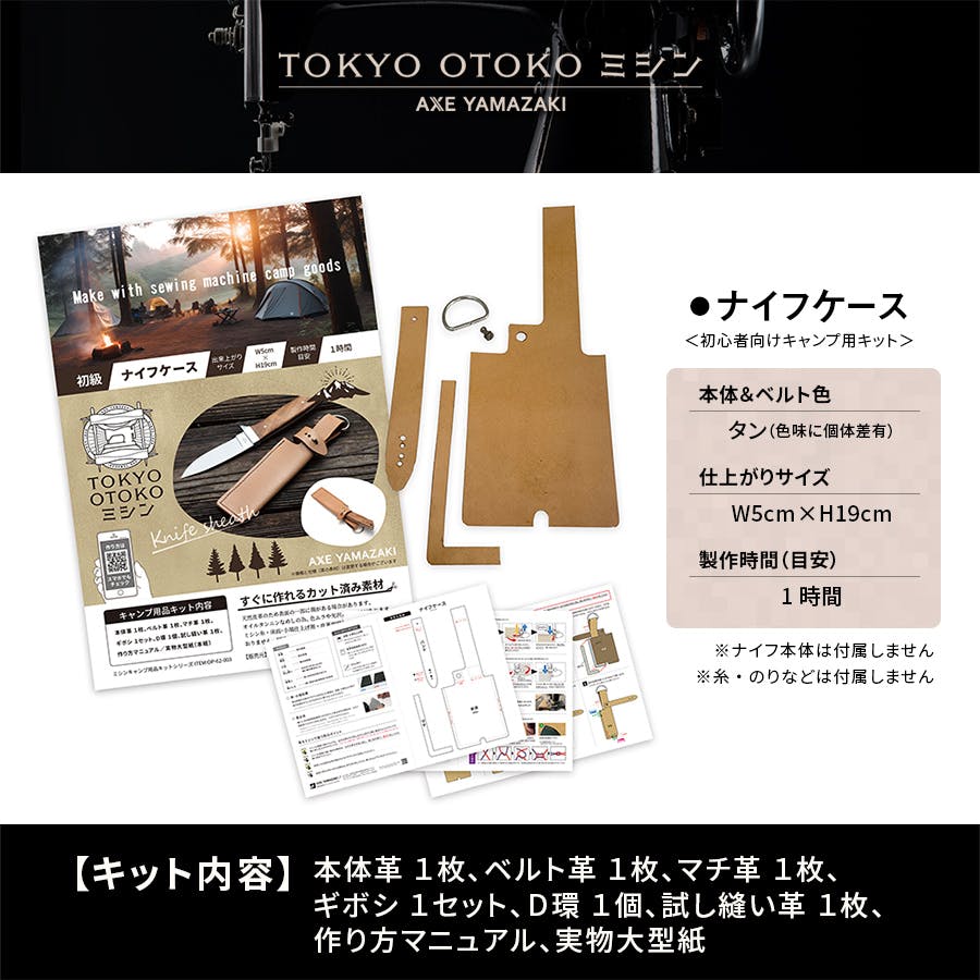 ミシン キャンプ 用 キット ナイフケース ナイフ カバー 保護 ナイフシース アウトドア グッズ 刃先 革 タン TOKYO OTOKO ミシン OM-01 初心者 簡単 日本製 栃木レザー ハンドクラフト 本革 プレゼント ギフト レザー オススメ みしん アックスヤマザキ アンティークミシン