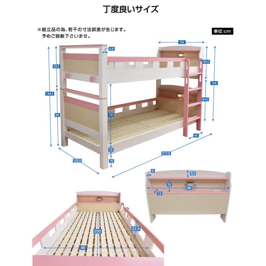 【ARTTOWN】二段ベッド 2段ベッド LED照明 コンセント 宮棚付き 分離シングル対応 耐荷重500kg 天然木パイン材使用 フィアット3 / ピンク / 【配送_大型】