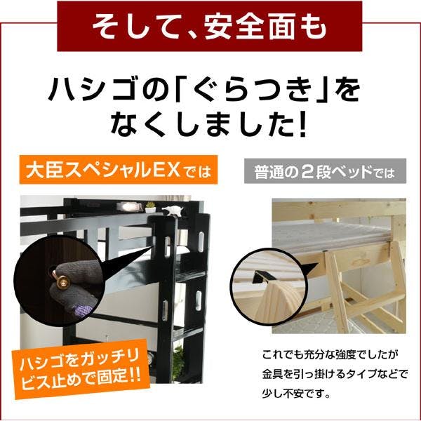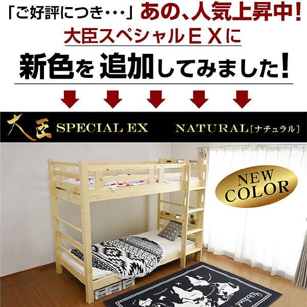 【ARTTOWN】二段ベッド 2段ベッド 宮棚付き LED照明 コンセント付き 耐震式 高耐荷重900kg 上下空間ゆったり仕様 大人 子供 パイン無垢材使用 大臣スペシャルEX / ナチュラル / 【配送_大型】