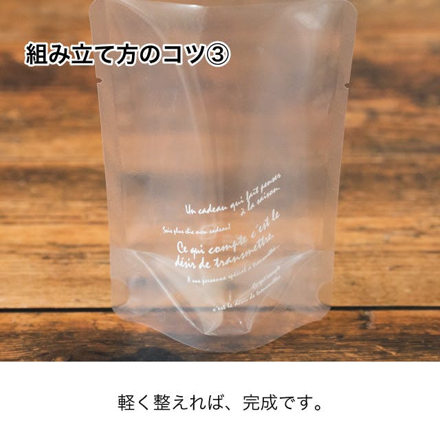 ■ピンホールの恐れがありますので、折り曲げて使用される際は先端部がこすれないようご注意ください。■熱止めされる際は袋の空気をしっかりと抜き、マチ部や背貼部の素材が重なり合った部分には特にご注意ください。