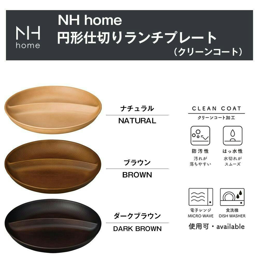 【NH home ワンプレート(円形仕切りランチプレート)】カフェ食器 おしゃれ 軽い 便利 落ちても割れにくい 割れない 防災グッズとしても 汚れにくい 洗いやすい 仕切り皿 バーベキュー 木製風 電子レンジ 食洗機 対応/ダークブラウン #4930689795200