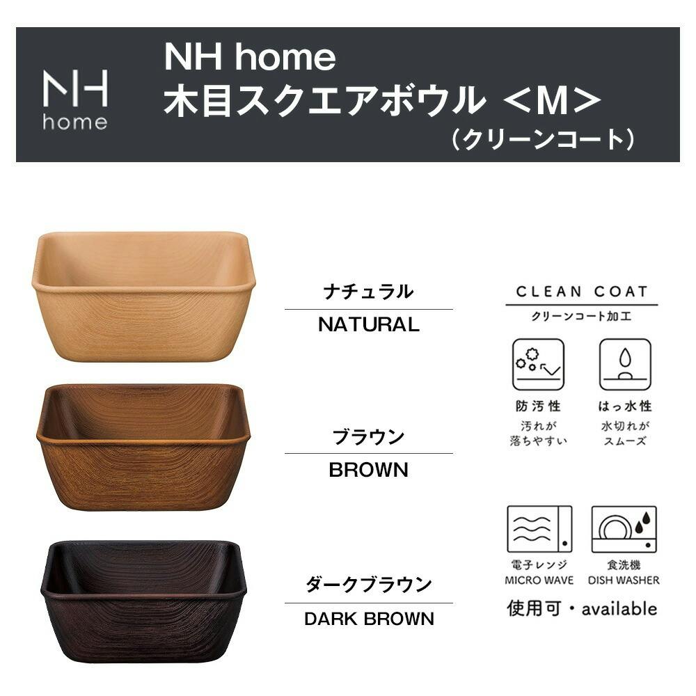 【NH home 木目スクエアボウル M】サラダボウル 軽い カフェ風 食器 落ちても割れにくい 防災グッズとしても注目 地震対策 汚れにくい 洗いやすい 食器 大人 かわいい 電子レンジ 食洗機 対応 日本製【正和】/ナチュラル #4930689794708