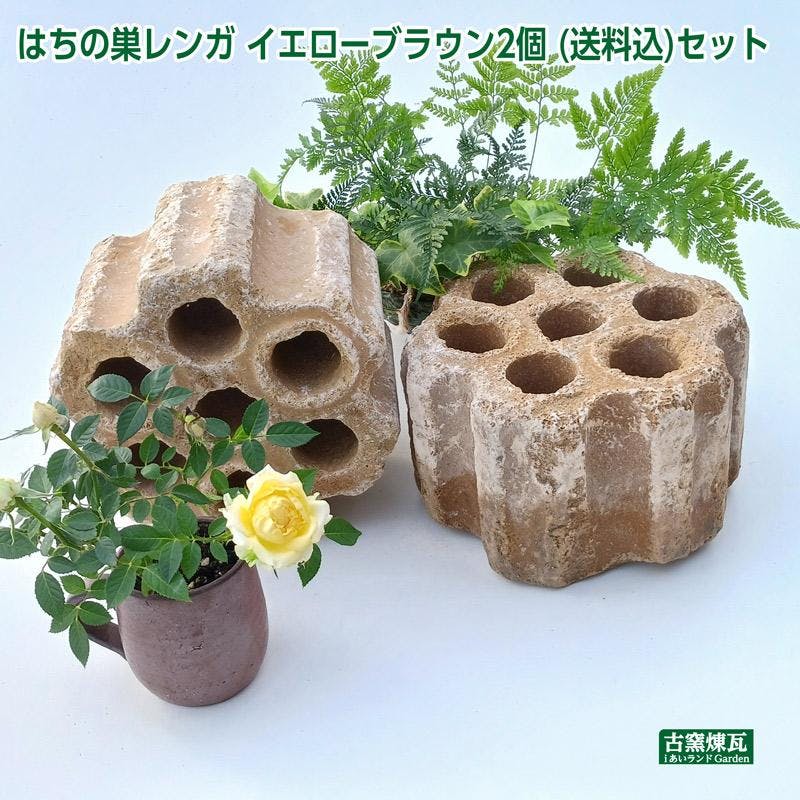 〈ネット限定〉アンティークレンガ はちの巣レンガ イエローブラウン2個 国産品