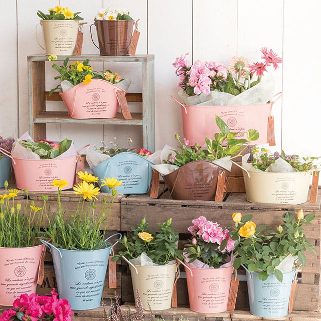 • ヘッズ トレイ・カゴ-ブリキ 直径130(95)×125mm カンパーニュブリキバケツ-M/アイボリー(6個) HEADS CNI-BBKM