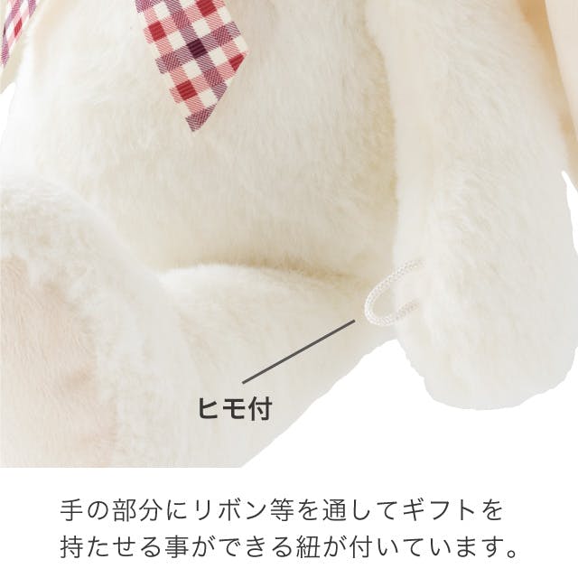 リボンを通してギフトを持たせることができます/足の裏にメッセージが刺繍されています