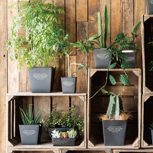 • ヘッズ トレイ・カゴ-ブリキ W145(110)×D145(110)×H150mm インダストリアルブリキポット-M/ブラック(6個) HEADS ID-BPOM