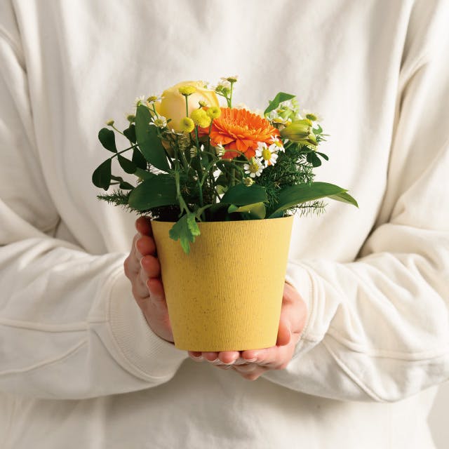 ヘッズ トレイ・カゴ-PP 直径100(70)×H90mm ウッディフラワーアレンジポット-S/オレンジ(10個) HEADS WDY-POOS