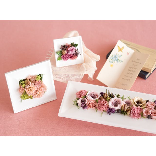 ■手作りの為、多少のサイズ違い・ゆがみ、色ムラが発生する場合がこざいます。■小さなキズ・細かなカケ・はがれ等が発生する場合がございます。■プリザーブドフラワーの変色やフレームが溶ける原因となりますので、ご使用の際はフレームに直接プリザーブドフラワーが触れないようご注意ください。■色あせやカビ等の原因となりますので、高温多湿を避け、直射日光の当たらない場所で保管してください。