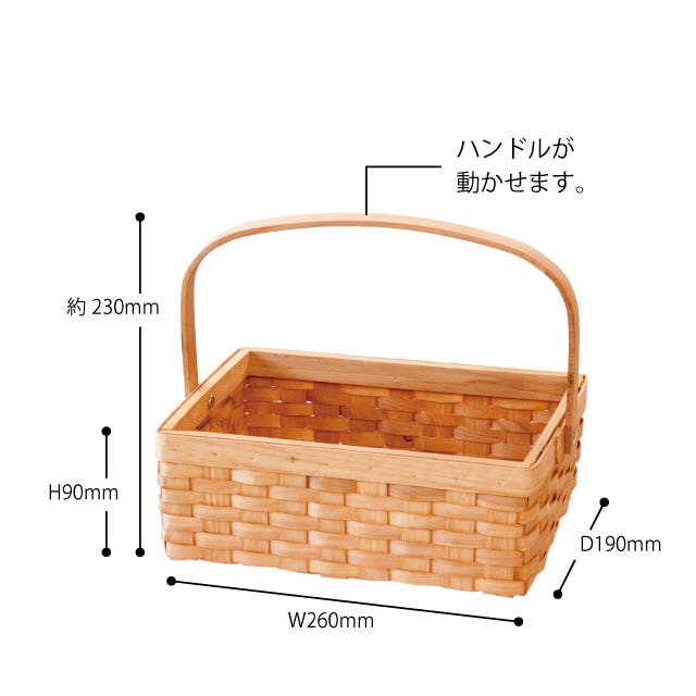 ヘッズ トレイ・カゴ-木 W260×D190×H90mm ウッドスクエアバスケット/ハンドル付-M(6個) HEADS WSQ-BKM