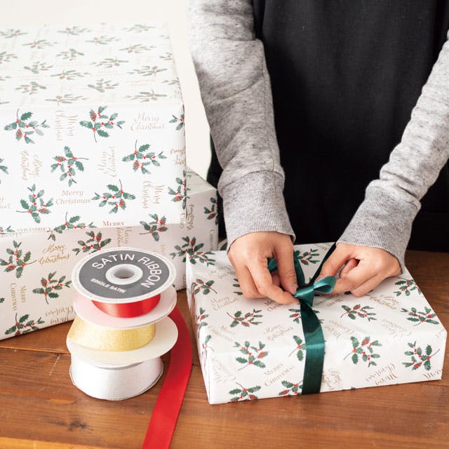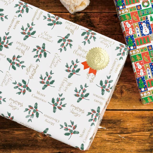 ヘッズ 包-紙-半裁 W750×H525mm クリスマスヒイラギ包装紙-1(50枚) HEADS XH-1W