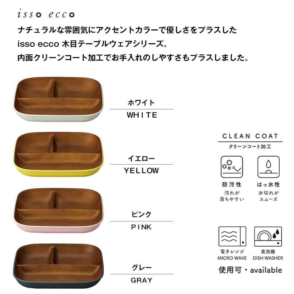 ランチプレート 仕切り皿【isso ecco 木目 スクエアワンプレート <L> 】おしゃれ 可愛い 皿 軽い 便利 スタッキング カフェ食器 電子レンジ 食洗機 対応 割れにくい お皿 地震 震災 防災対策にも 木製風【正和】/ホワイト #4930689678633