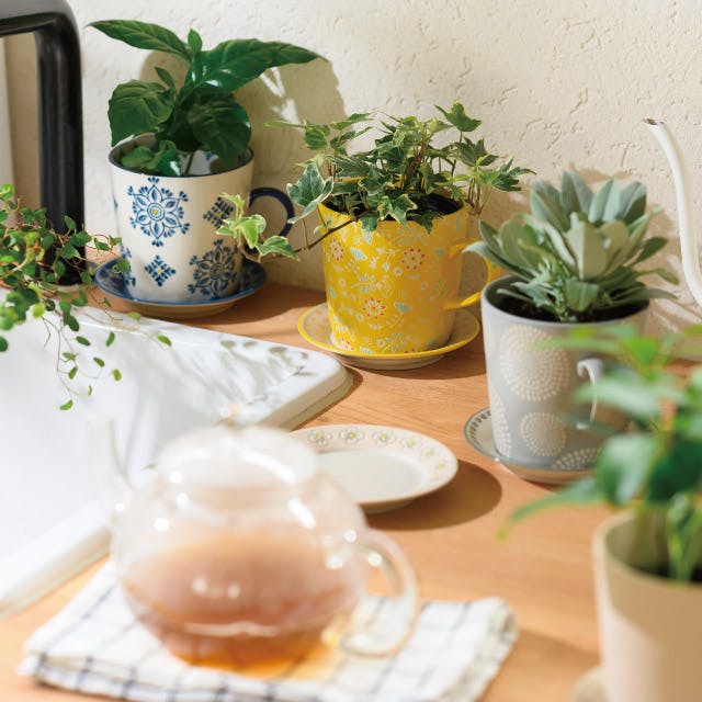 ヘッズ 雑貨-フラワーベース W140×D120×H105mm ハンドメイドプリントフラワーポット-12/カップ&ソーサー(2個) HEADS HNP-FPO12