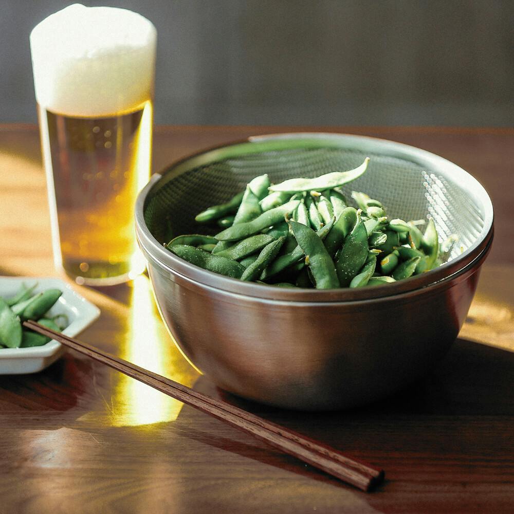 ・サビに強くお手入れも簡単なSUS304(18-8ステンレス鋼)の0.8mm材を使用しています。深めの形状でも伸ばすことが可能なスピン加工という手法を用い、底面は厚く重くすることで安定し、側面を伸ばすことで全体を軽量化しました。・フチを巻くことで丈夫で握りやすく、水が入り込みにくいためお手入れがしやすい形状です。・同シリーズのざると重ねてお使いいただけます。重ねた際にざるが少し浮くため流水を逃し、食材があふれる心配がありません。
