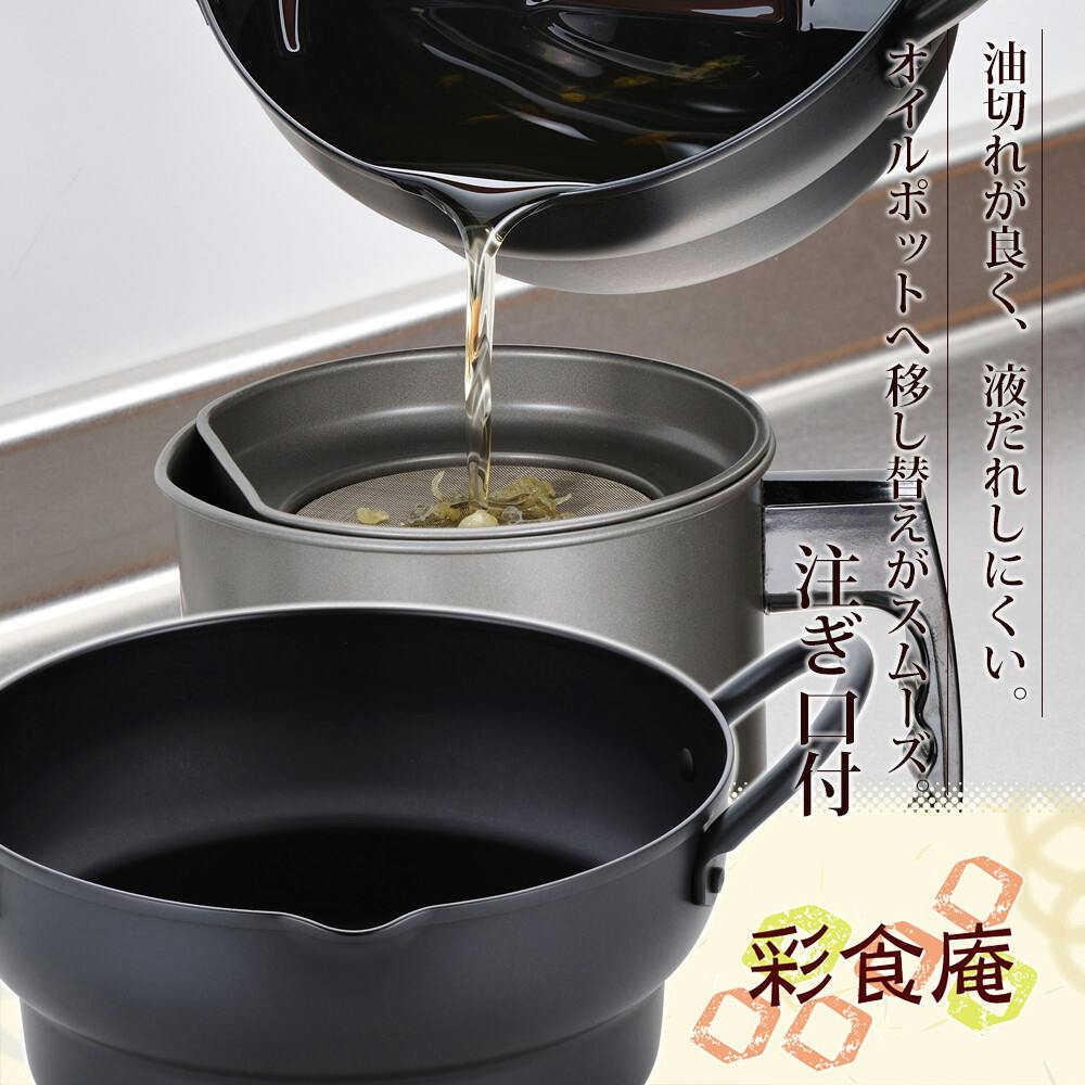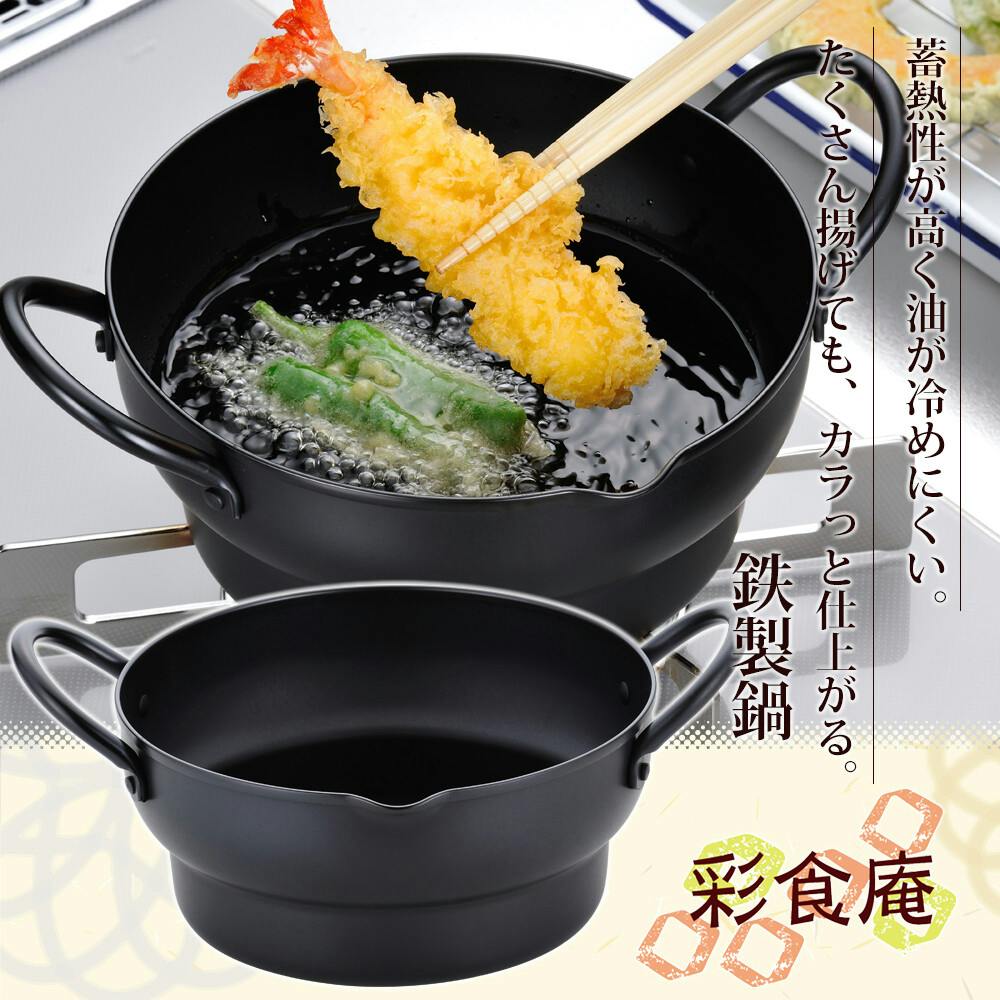 彩食庵 IH対応両手段付天ぷら鍋18cm&木柄フライヤーセット SM-9548 【日本製】