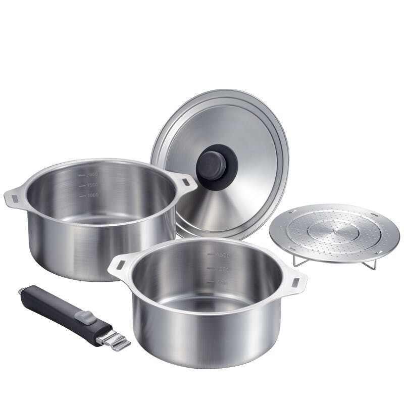 鍋・兼用蓋・蒸し台/ステンレス鋼、着脱ハンドル/フェノール樹脂
