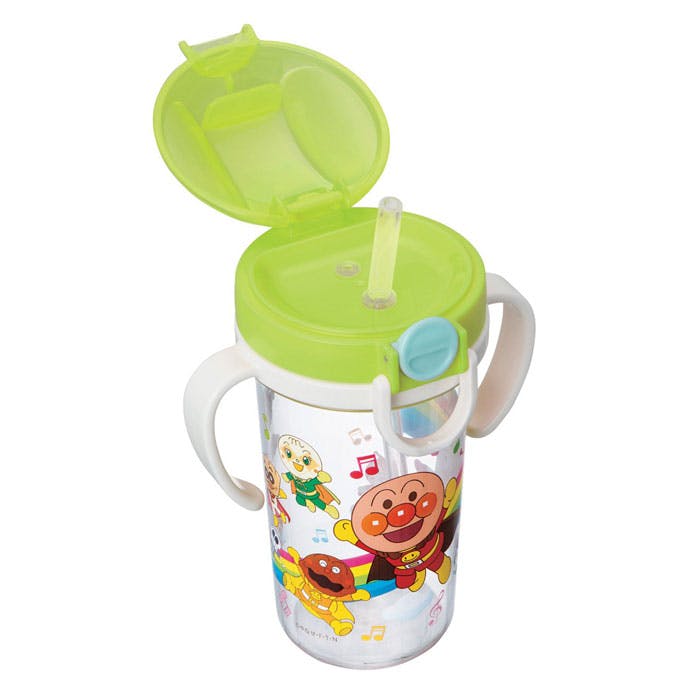 アンパンマンと一緒にストロートレーニング!ワンタッチオープンのストローマグ。樹脂製ですが、ガラスのような透明感で中が見やすく安心です。 洗いやすく、組立も簡単です。