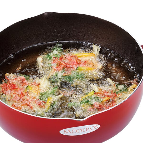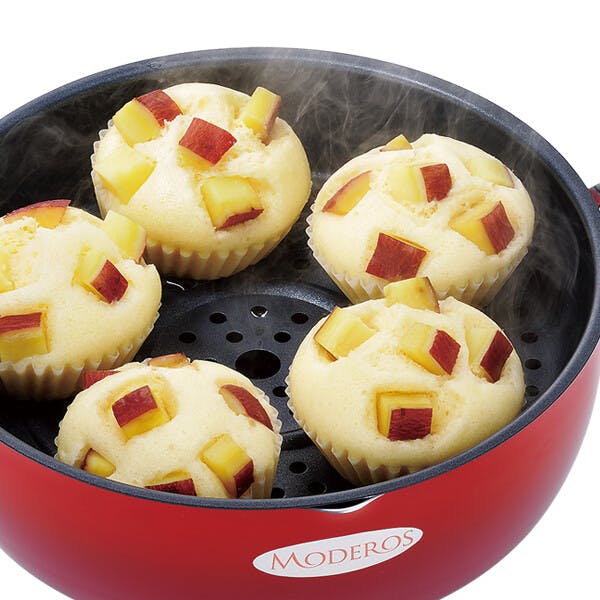 本体:アルミニウム合金、底面:ステンレス鋼、外面:焼付塗装、内面:フッ素樹脂加工(ダイヤモンドコート+プリント)、蓋:強化ガラス、目皿:アルミニウム合金・フッ素樹脂加工