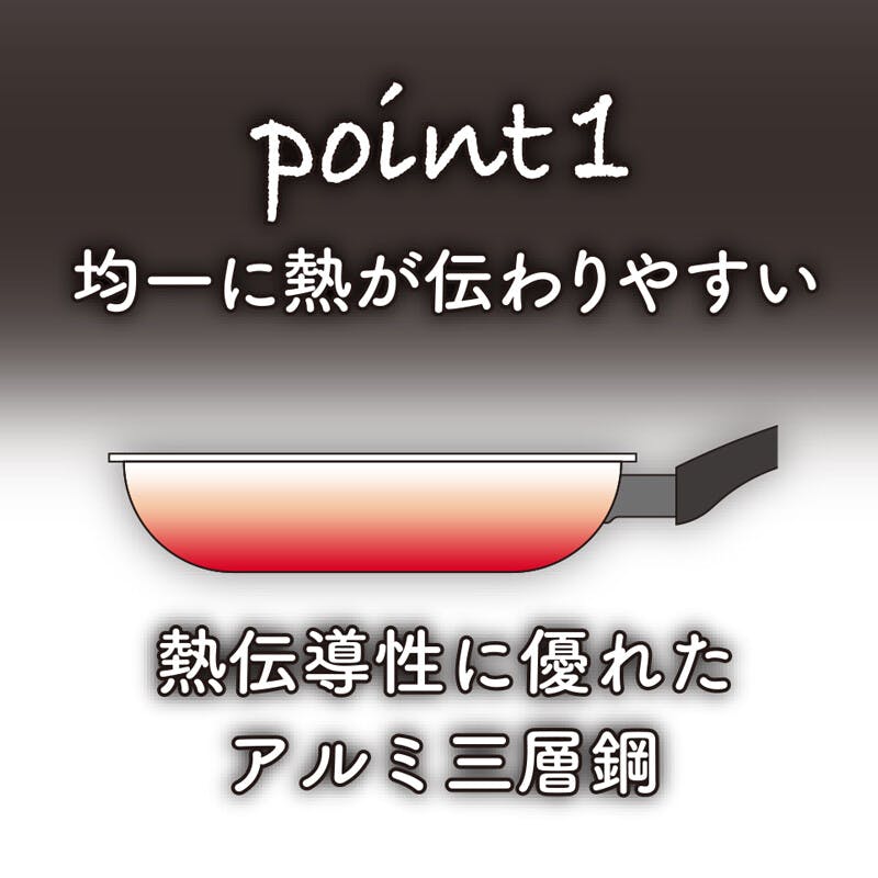 ステンレス鋼(クロム18%・ニッケル8%)・アルミニウム合金・ステンレス鋼(クロム16%)、底の厚さ2.2mm