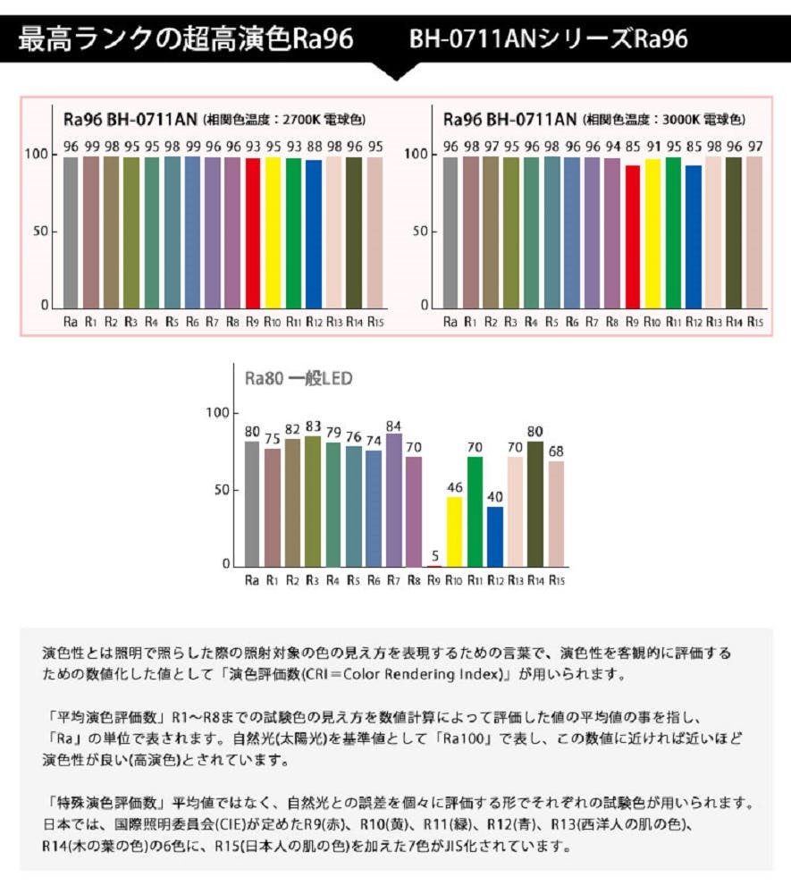• 高演色クラス4 演色AAA LED電球 E11 60形相当 高演色Ra96 フリッカーフリー 電球色3000K BH-0711AC-WH-30-Ra96