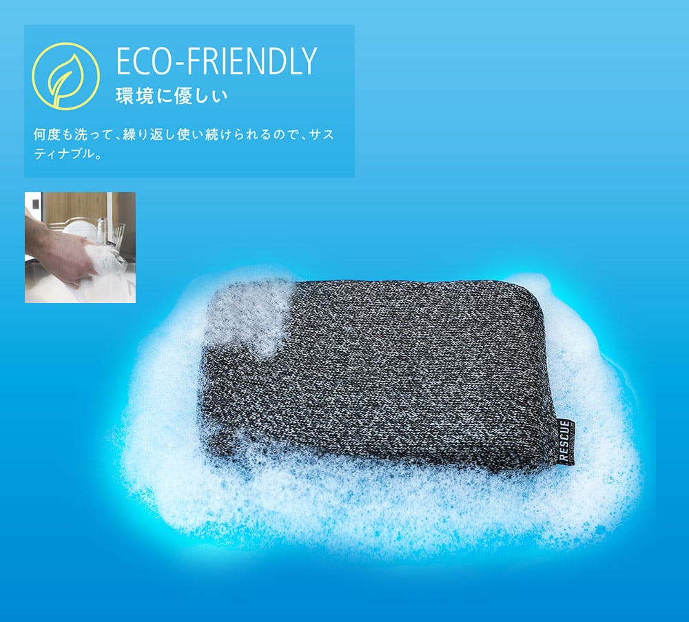 世界初!ナイフでも破れない、熱にも強い、抗菌性も持つ、タフでクリーンな長年使えるスポンジ。 すぐにダメになってしまう不快なキッチンスポンジへの不満と、使い捨て文化に立ち向かうためにフォーエバースポンジは生まれました。 発明者のスコットはアメリカの現役消防士で、救急隊員やレスキュー隊としても日々社会に貢献しています。 彼はその経験を活かし、単なる日用品を効率的かつ環境に優しいものにするために求めたものは抗菌性を持ち、耐切創性と耐熱性に優れたものでした。
