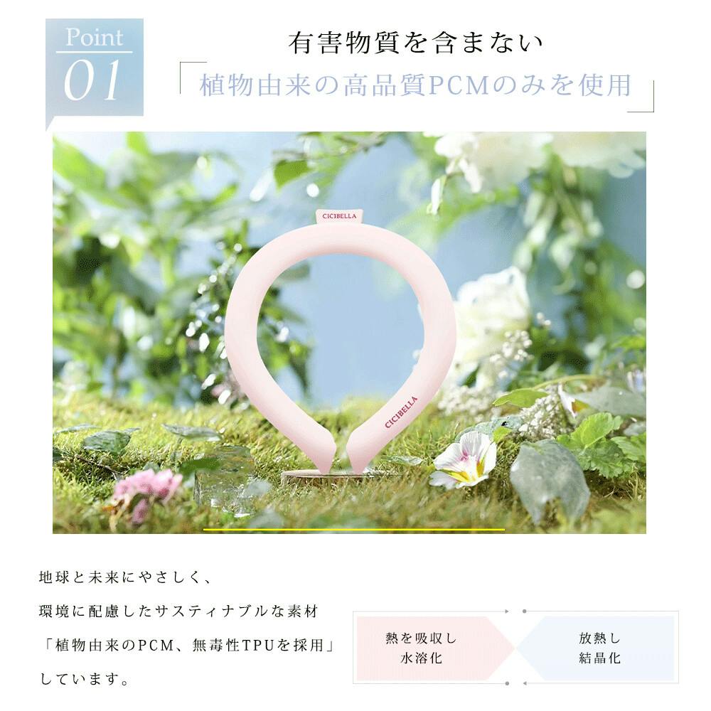 ・暑い真夏の季節でもリングはひんやりキープ!28度以下の空間で凍る不思議な氷「PCM素材」で作られた首元用のネッククーラー。・心地良い温度で首の頸動脈を効率的に冷やすので暑さ対策にもオススメ!氷のように冷えすぎないので低温障害の心配もなくお肌にもやさしい♪・一度溶けてもエアコンの効いた涼しい空間などに置いておくだけでも再び凍って繰り返し使える!冷凍庫に入れたり水道水に浸けることでさらにスピーディに凍るので急なお出かけにも対応します。・首元にフィットして落ちにくいデザイン。