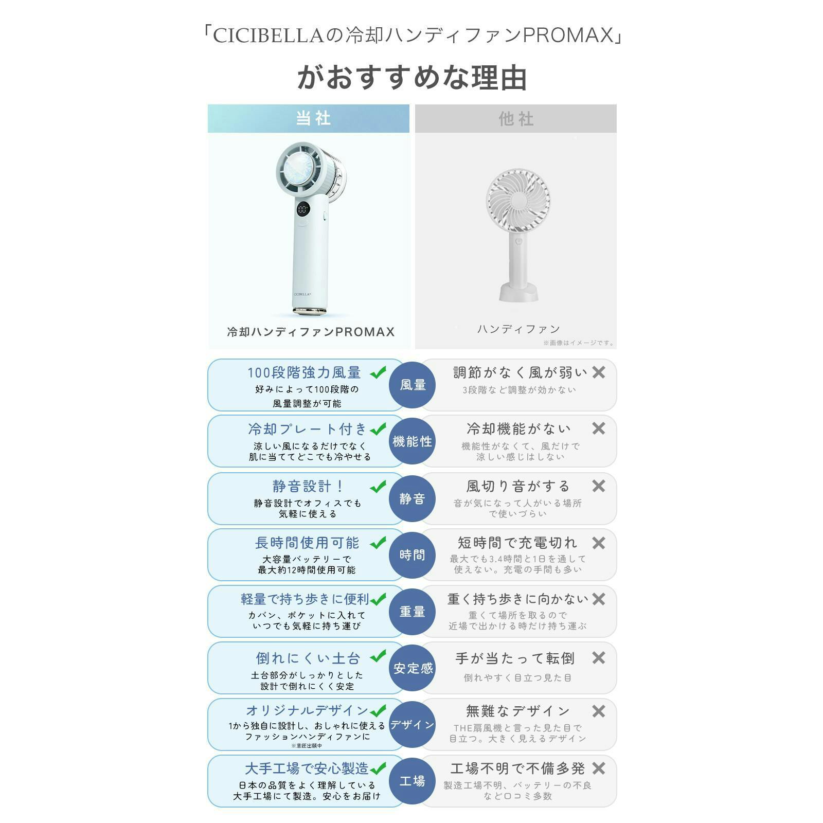 CICIBELLA シシベラ 冷却ハンディファン PROMAX \2025夏新商品/ 熱中症対策 猛暑対策 冷却プレート ペルチェ付き 100段階 卓上 手持ち 扇風機 持ち運び コンパクト 軽量 急速充電 / パールレース(e13-58479)