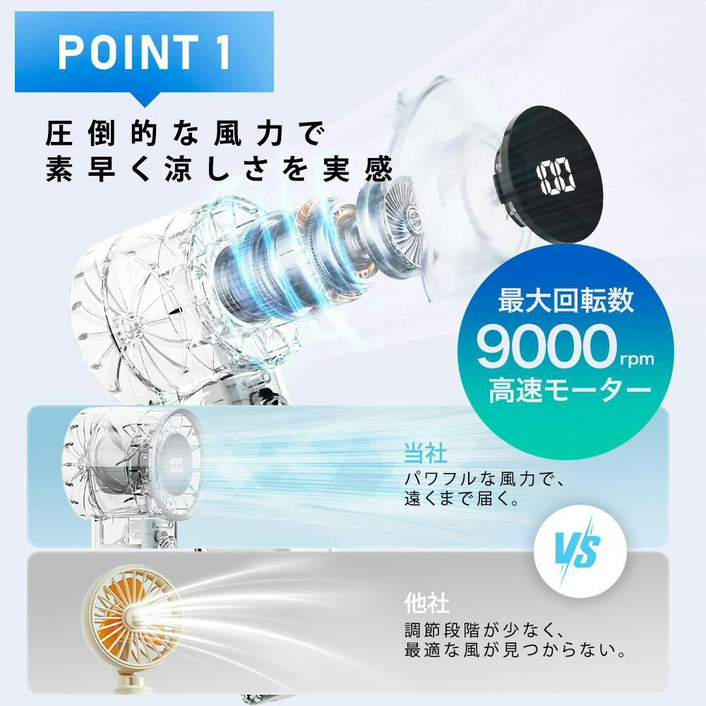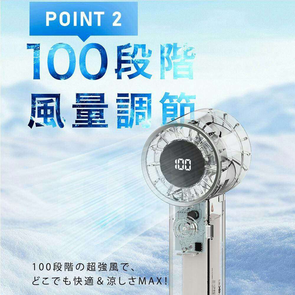 SNSで話題の小型扇風機!CICIBELLA独自開発の次世代クリアデザイン!コンパクトなのにパワフルな風力で涼しさを実感!バッグに入れて持ち運びも楽々♪100段階調節可能なので通勤中や勤務中に好みの風量で快適に!