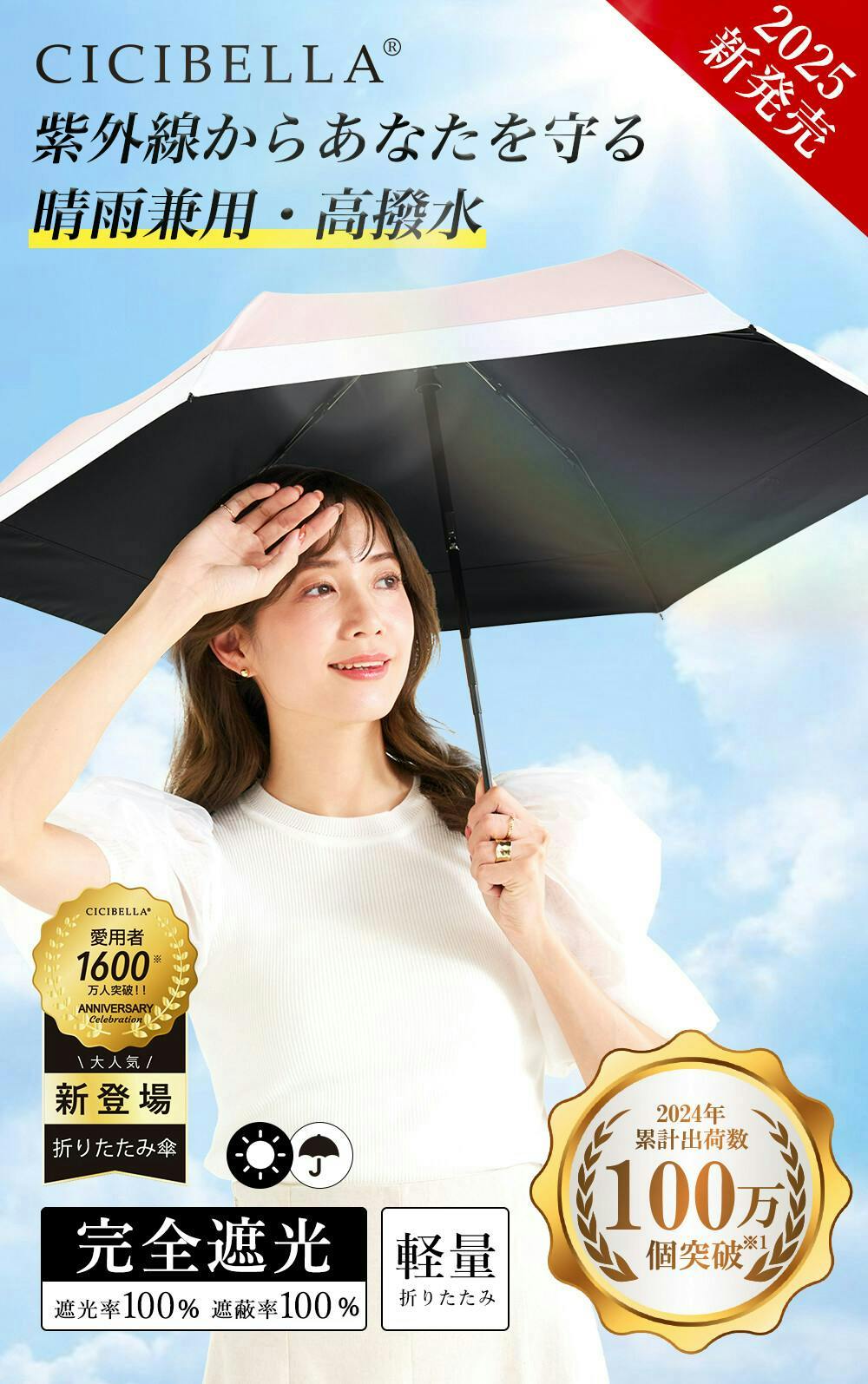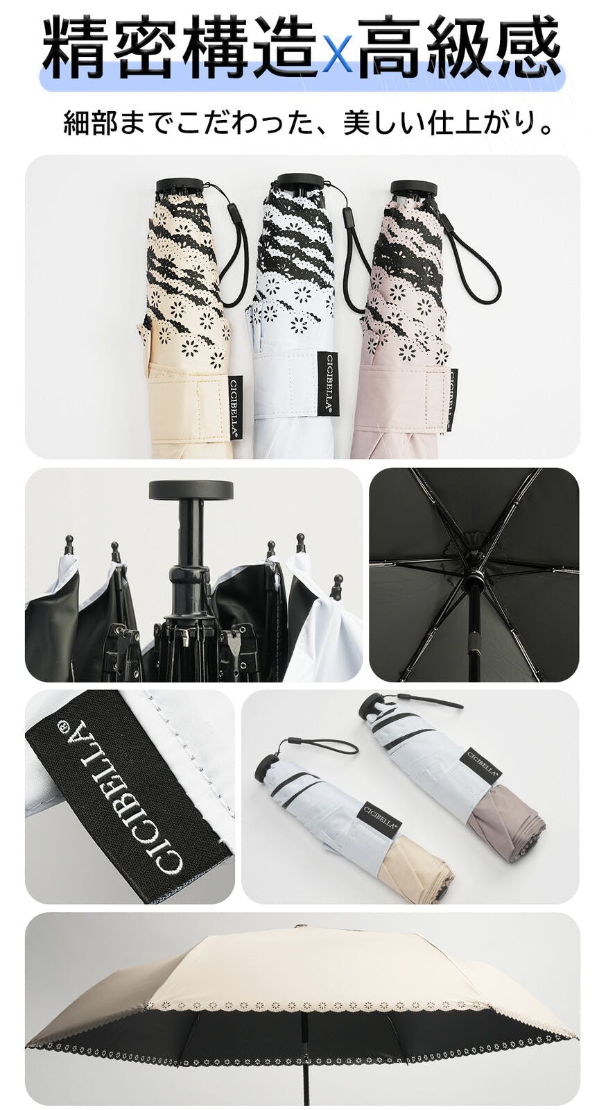 超軽量 日傘 コンパクト 約145g 折りたたみ傘 遮光 UVカット 完全遮光 晴雨兼用 風に強い / コンパクト バイカラー ダスティブラウン×スノーグレー(k15-58912) CICIBELLA シシベラ