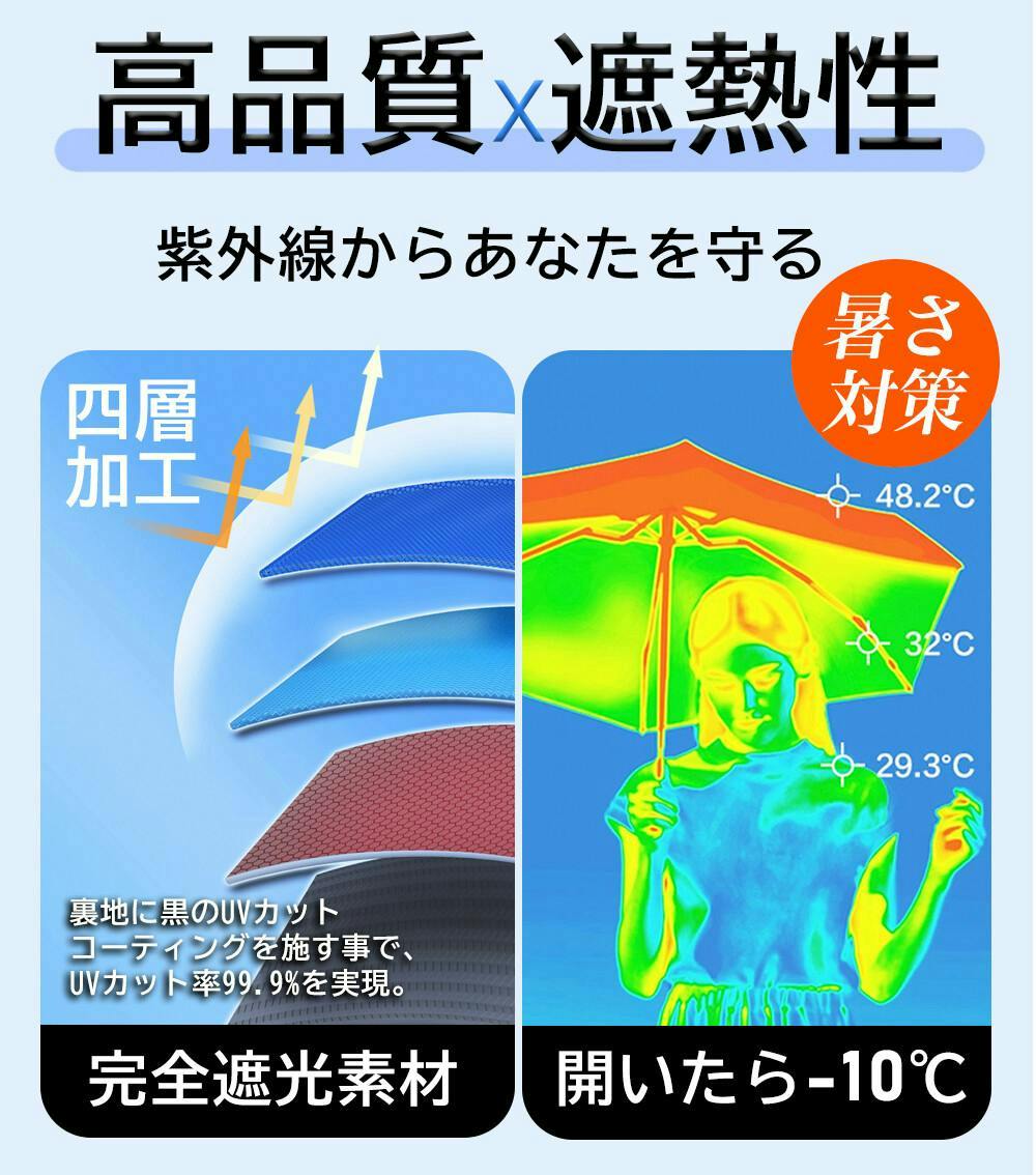 ●全長:507cm/収納時の長さ:22cm/直径: 90cm/重さ:約145g/※測定方法によって誤差が生じますので、予めご了承下さい。 特徴/遮光率/100% 一級遮光/UV遮蔽率/90%以上/近赤外線遮蔽率/99.9%/晴雨兼用/撥水等級5級/カーボン耐風骨