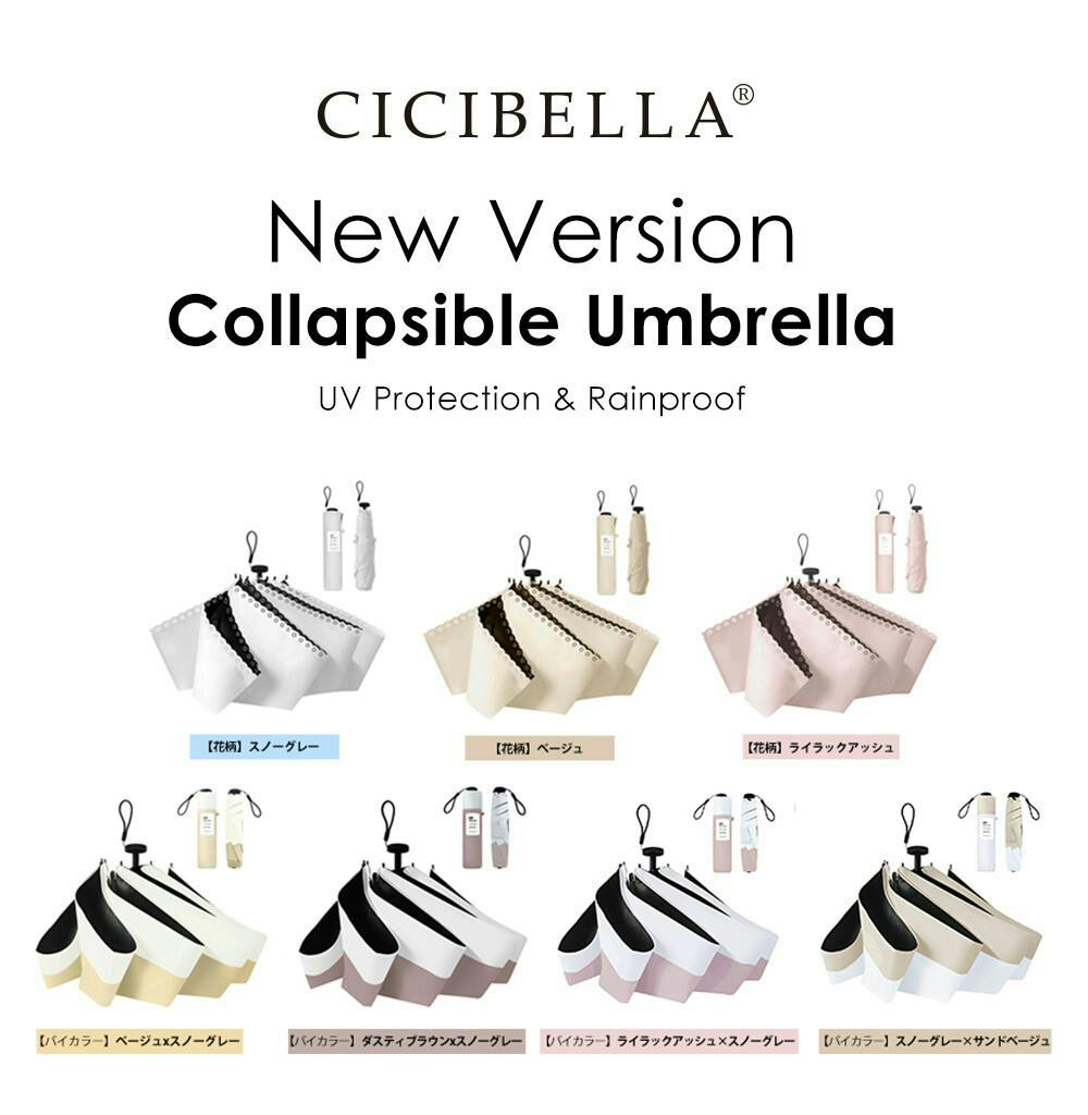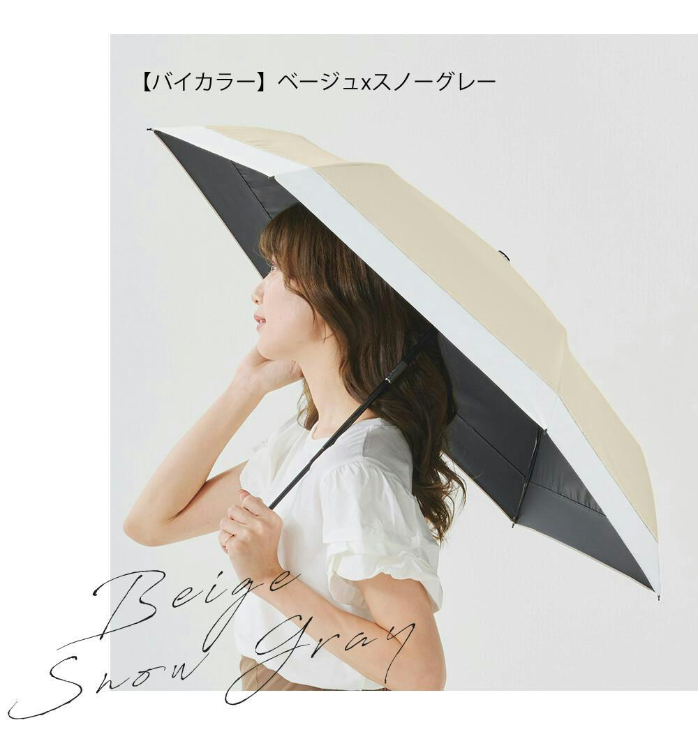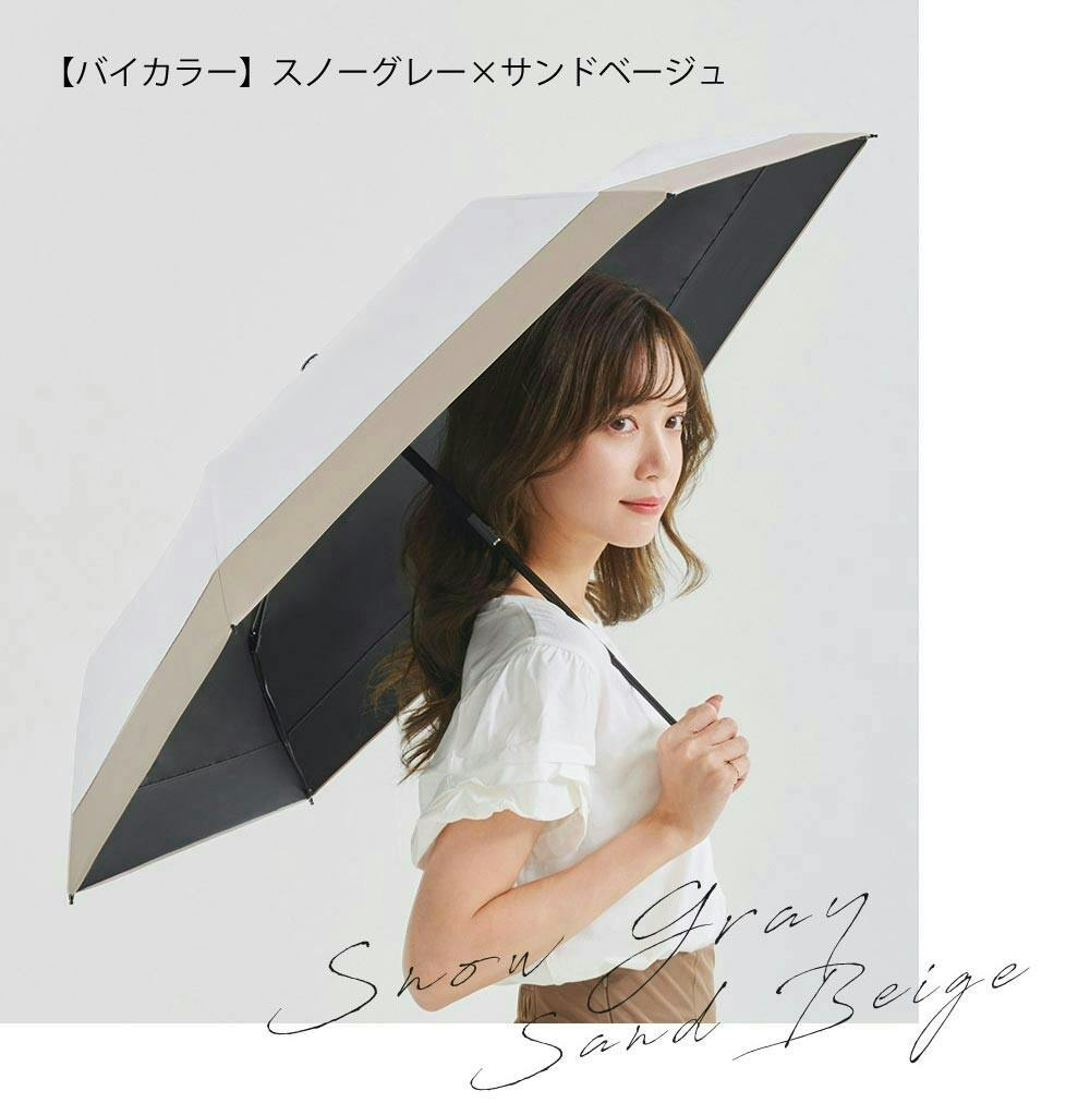 超軽量 日傘 コンパクト 約145g 折りたたみ傘 遮光 UVカット 完全遮光 晴雨兼用 風に強い / コンパクト バイカラー スノーグレー×サンドベージュ(k15-59889) CICIBELLA シシベラ