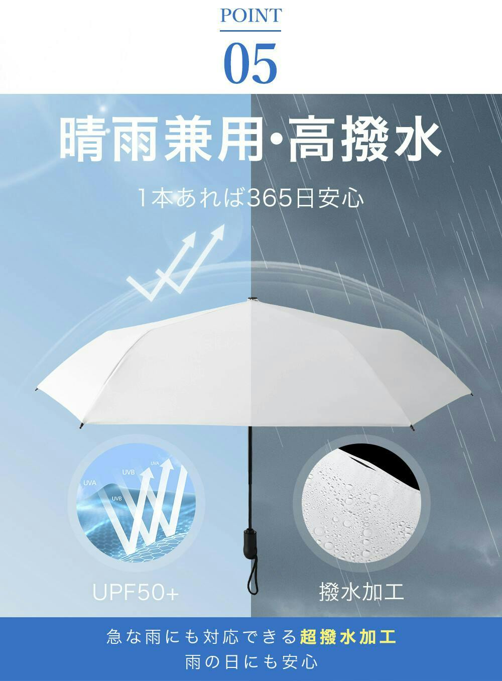 【カーボン傘 超軽量】高級傘にしか使わないカーボンファイバーを使用。直径110cmの大きさで完全遮光なのに重さはたった240g!突然の雨や眩しい日射しに大活躍してくれます。折りたたむ時の長さは28cm。カバンに入れて携帯できるスリムサイズで急な雨でも安心です。【UVカット完全遮光&撥水抜群】通常の生地より高密度。その表面は非常に細く、水滴を吸収することなく弾きます。そのため、水切れがとても良く、傘を差した後は軽く振っていただくだけOK。カバンにも気楽にしまうことができます。