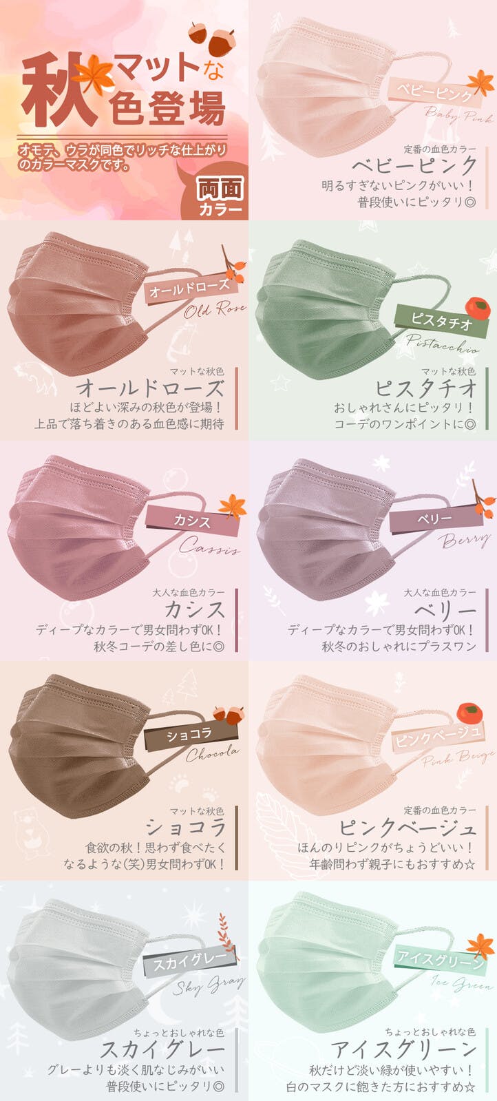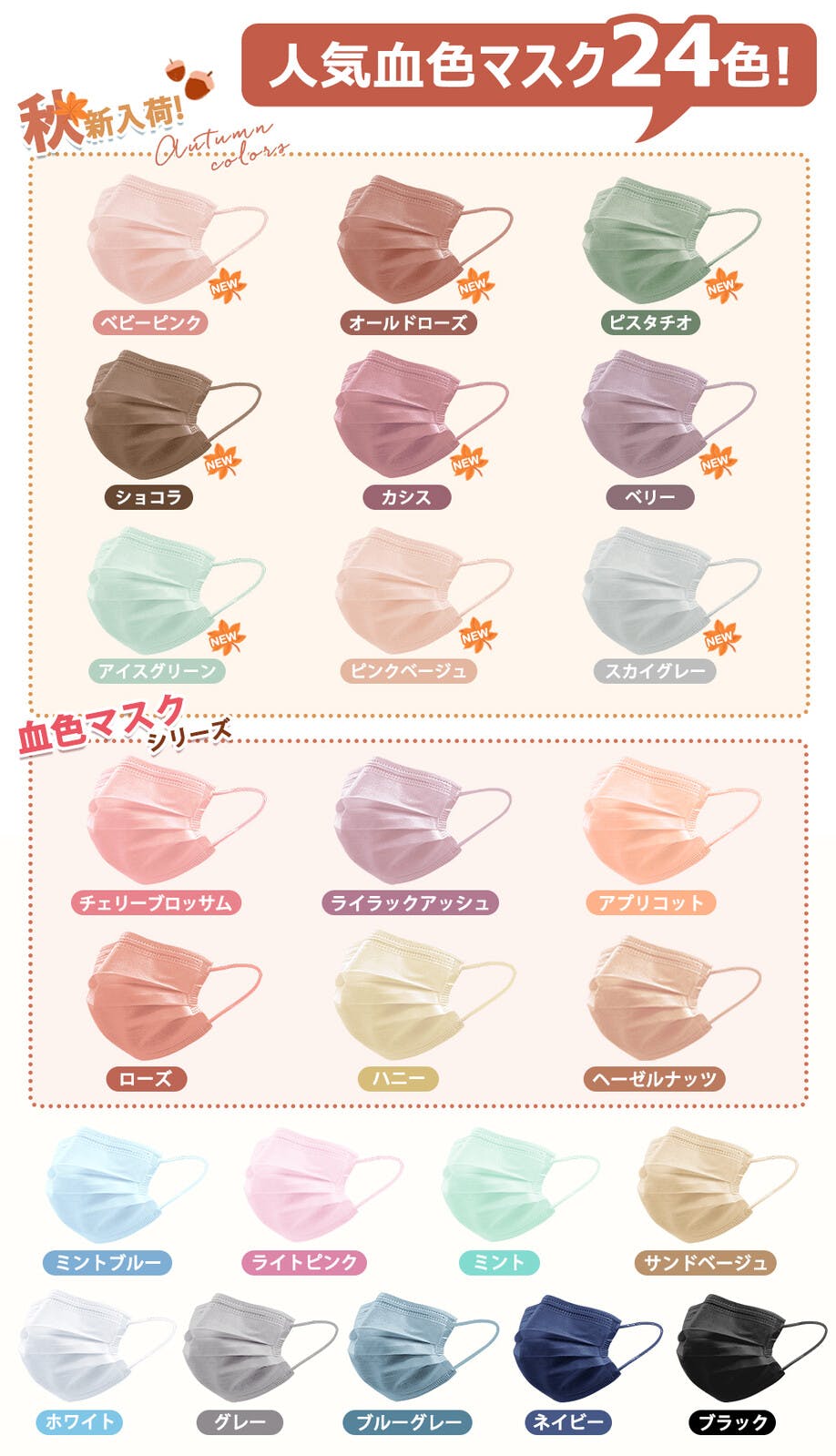 王道プリーツマスクをオシャレに...カラーバリエーション豊富で、その日の気分や洋服に合わせてお楽しみいただけます!大容量の51枚入り!物価高の今だからこそ、お手に取りやすい価格でご提供いたします。
