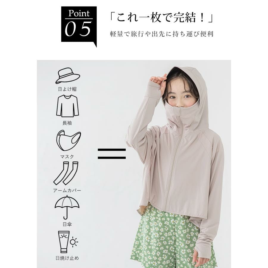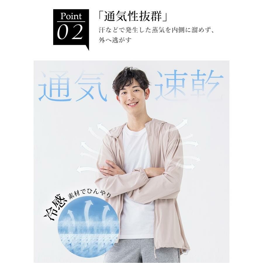 ・360度紫外線CUT・雨や水の侵入を防ぎやすい構造・汗などで発生した蒸気を内側に溜めず、外へ逃がす・ストレッチ素材により、最適なフィット感を実現・着心地が良い・軽量で旅行や出先に持ち運び便利・アウターとしても、紫外線対策の羽織りとしても
