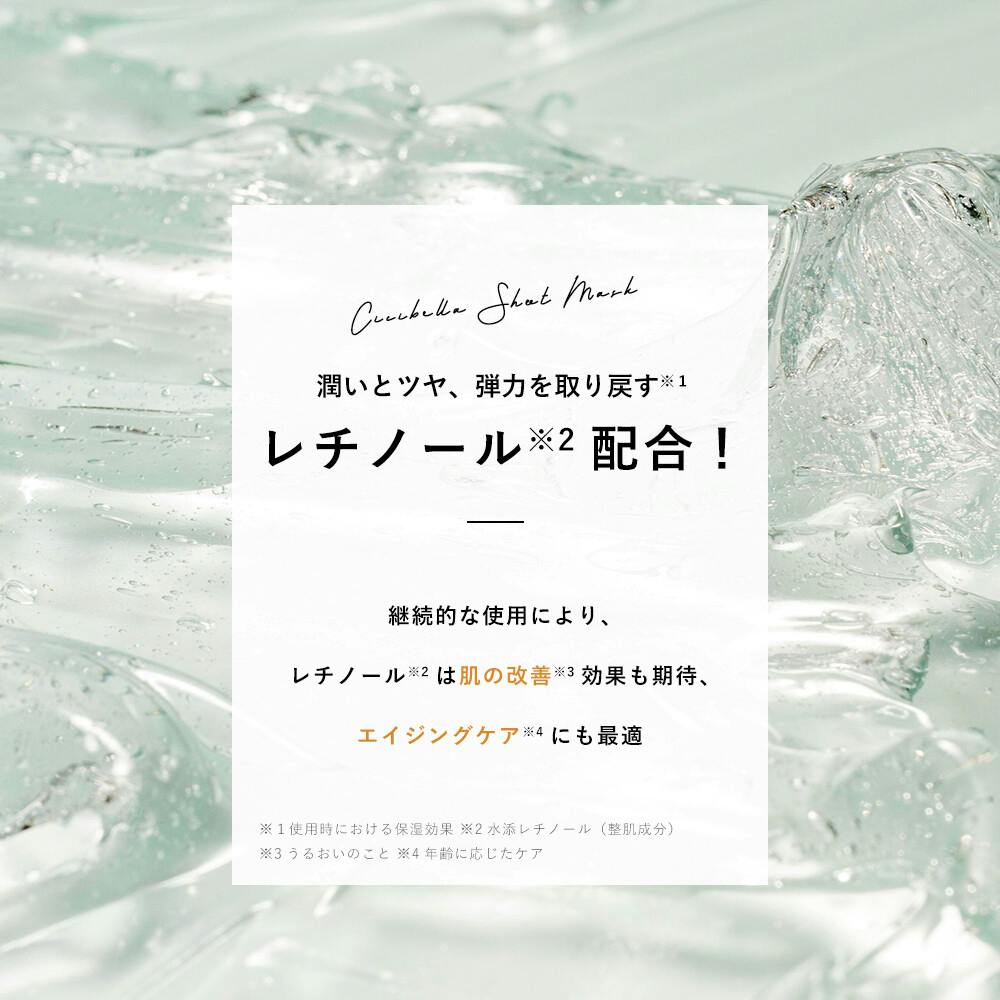 水、BG、グリセリン、水添レチノール、アスコルビルグルコシド、アスコルビルリン酸Na、パルミチン酸アスコルビルリン酸3Na、テトラヘキシルデカン酸アスコルビル、ヒアルロン酸Na、グリチルリチン酸2K、レモングラス葉/茎エキス、ユズ果実エキス、ダイズ種子エキス、キサンタンガム、クエン酸、クエン酸Na、PEG?60水添ヒマシ油、ラベンダー油、レモン果皮油、ライム油、レモングラス油、エンピツビャクシン油、ローズマリー葉油、フェノキシエタノール、メチルパラベン