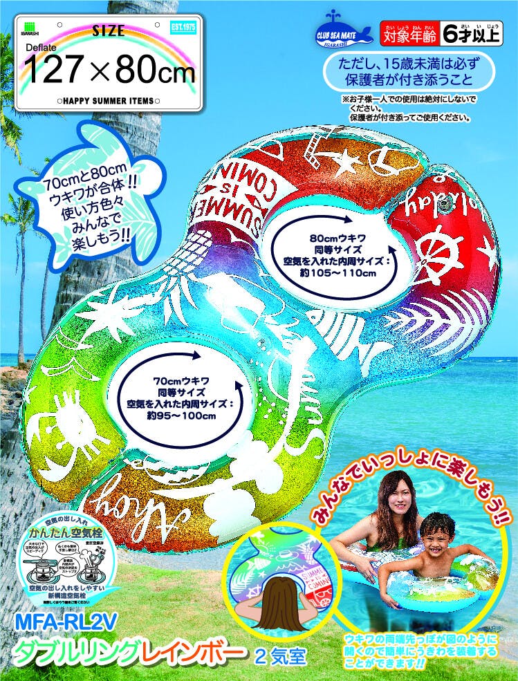 【2人用浮輪 ダブルリングレインボー うきわ 浮き輪】 ビーチ 海 プール グッズ 水遊び 幼児 子供 男子 大人 女子 #4970134240169 イガラシ