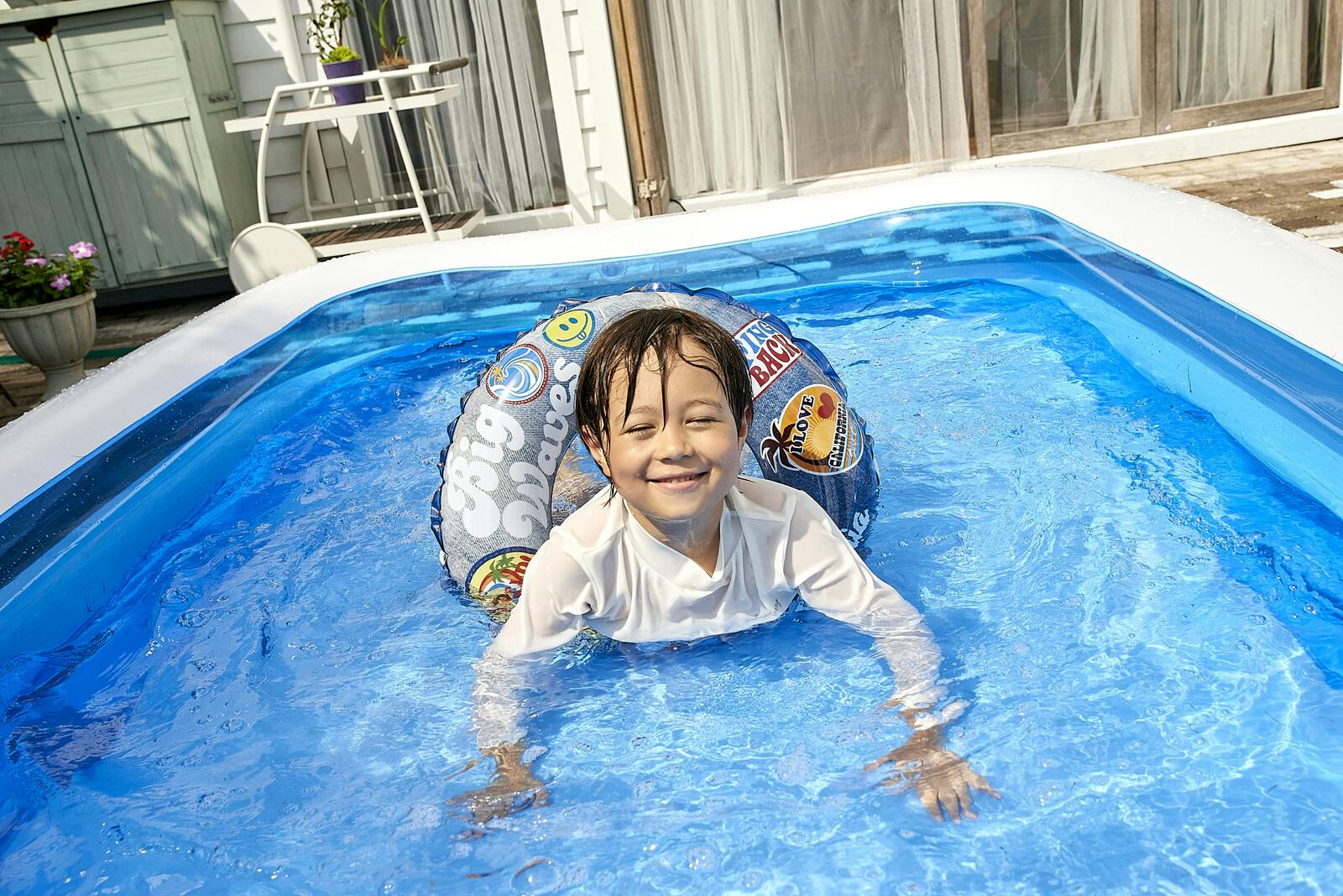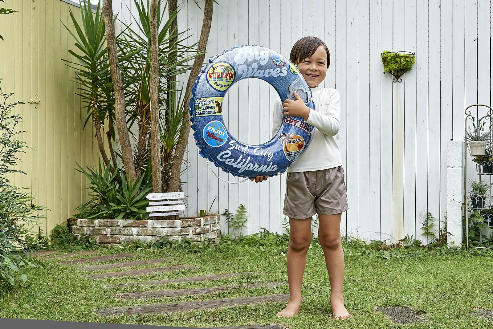 対象年齢4歳~8歳くらいのお子様に最適!。膨らんだ状態のウキワの内周は約85~90cmです。ロープ付き。空気の注入と排出が簡単!「かんたん空気栓」採用。