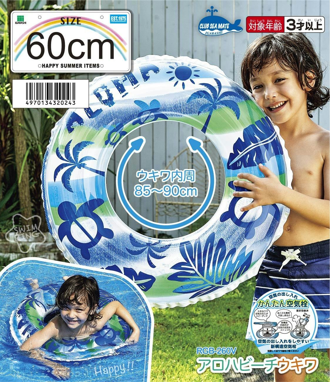 【かんたん空気栓採用浮輪 お子様用 ウキワ 浮き輪 アロハビーチ ウキワ 浮き輪 うきわ 60cm】 ビーチ 海 プール グッズ 水遊び 幼児 子供 男子 大人 女子 #4970134320243 イガラシ