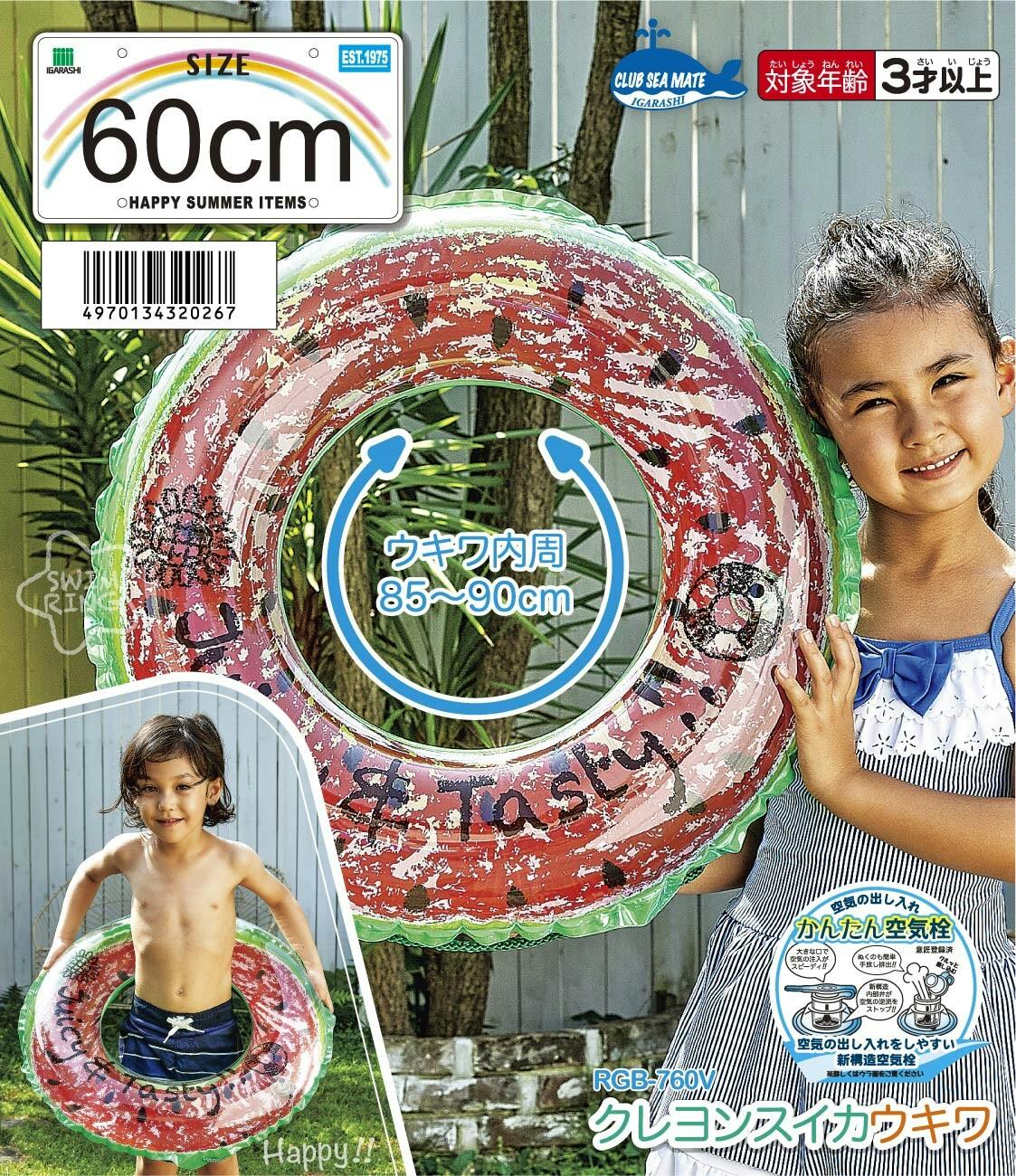 【かんたん空気栓採用浮輪 お子様用 ウキワ 浮き輪 うきわ クレヨンスイカ ウキワ 浮き輪 うきわ60cm】 ビーチ 海 プール グッズ 水遊び 幼児 子供 男子 大人 女子 #4970134320267 イガラシ