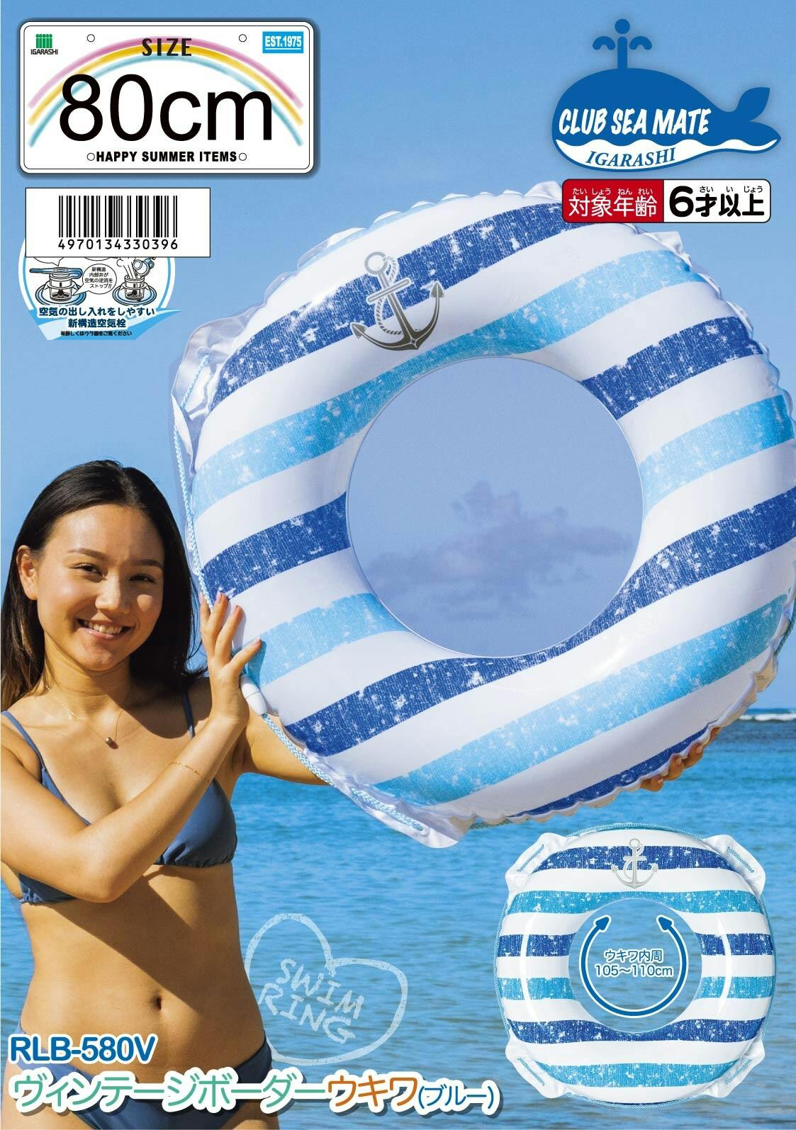 【中高生以上のティーンに最適!な浮輪 ヴィンテージボーダー ウキワ 浮き輪 うきわ(ブルー)80cm】 ビーチ 海 プール グッズ 水遊び 幼児 子供 男子 大人 女子 #4970134330396 イガラシ