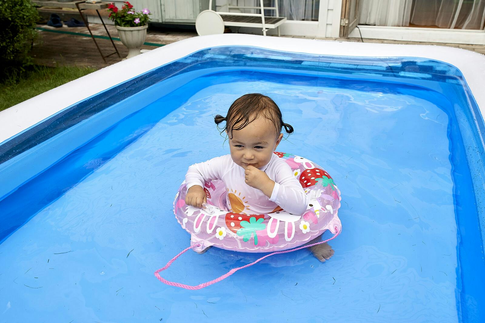 対象年齢1,5~3歳未満。乳幼児のお子様が水に落ち込まないよう浮輪の内側に座が付いたタイプの浮具です。グリップ付きの浮輪タイプ。