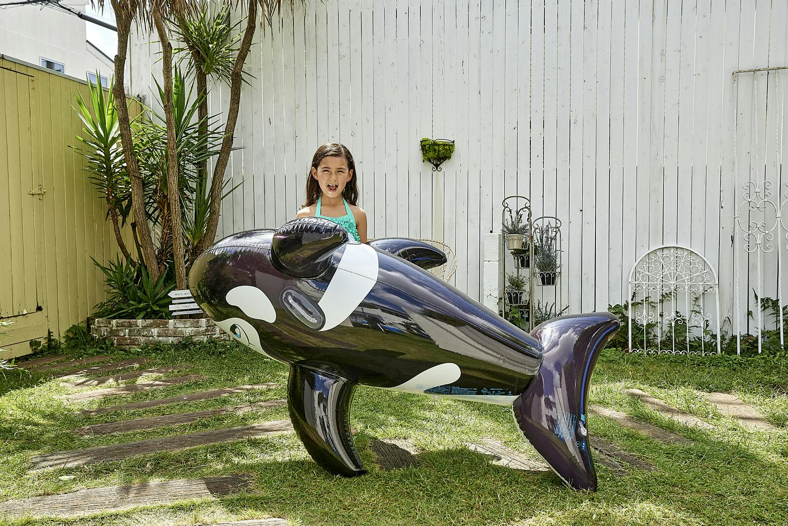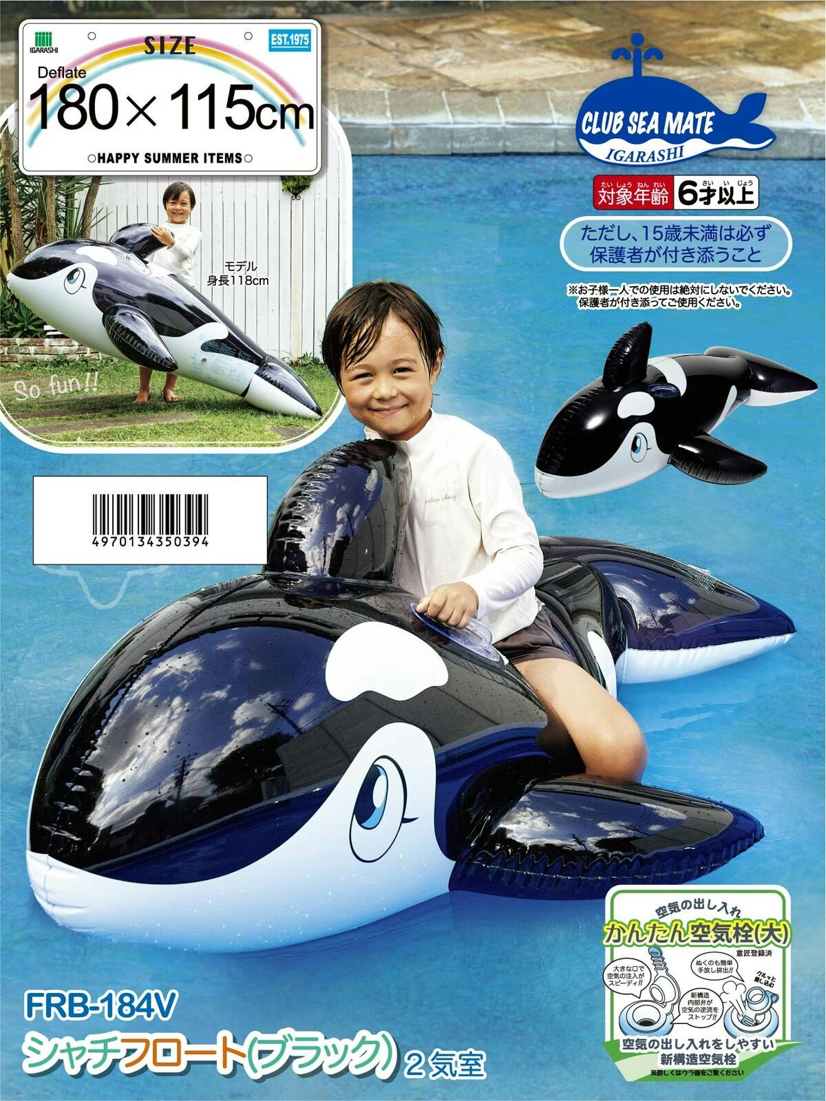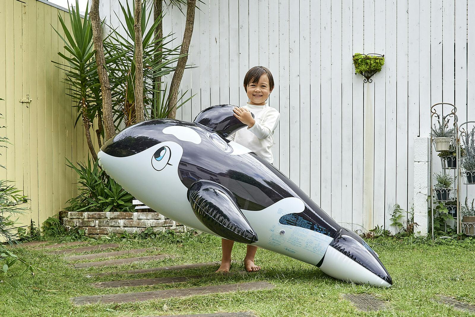 おなじみシャチのフロートです。大きさは180×115cmです。グリップ付き。かんたん空気栓装着商品