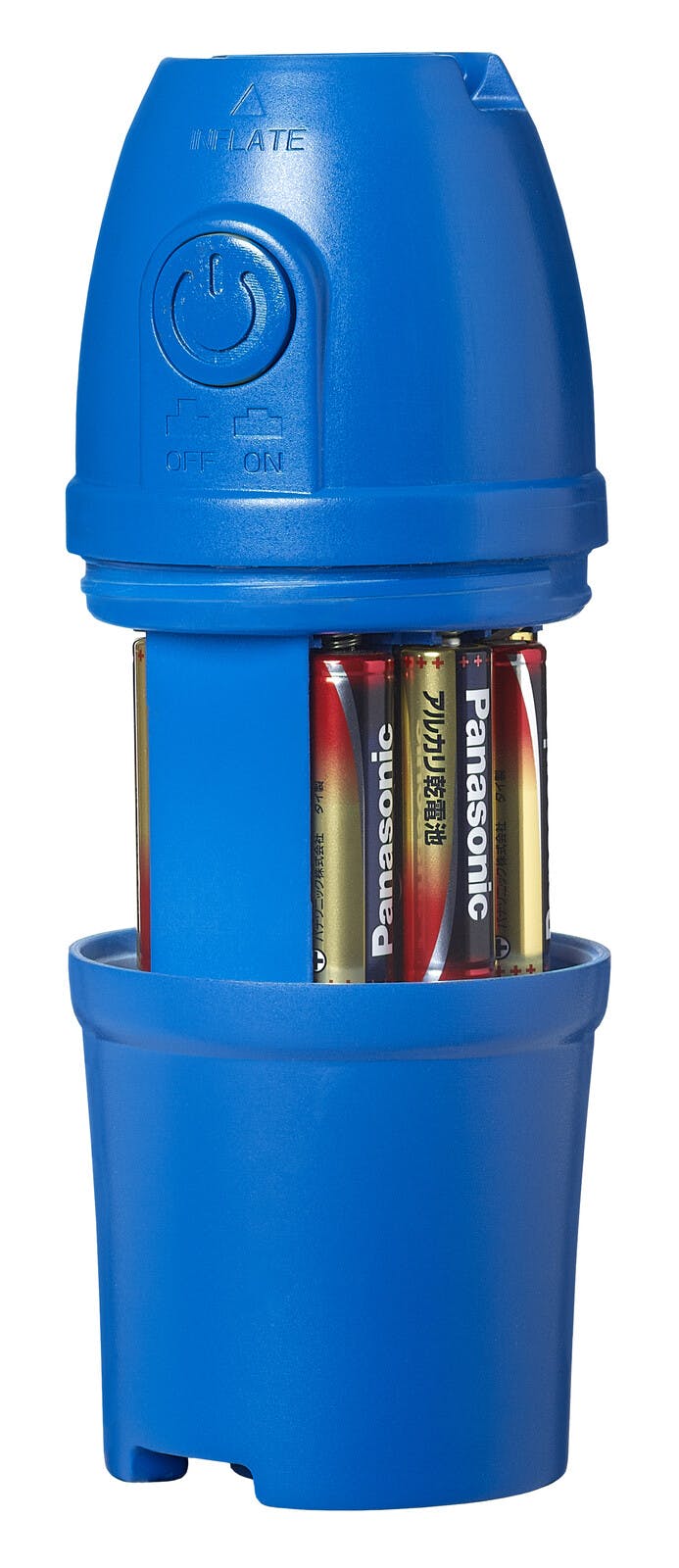 電池を使用するタイプの電動ポンプです。空気注入の他に空気排出も高速で行えます。電池は単3電池を8本使用します。(電池は別売り)電池式でもハイパワー!最大値 圧力0.6psi