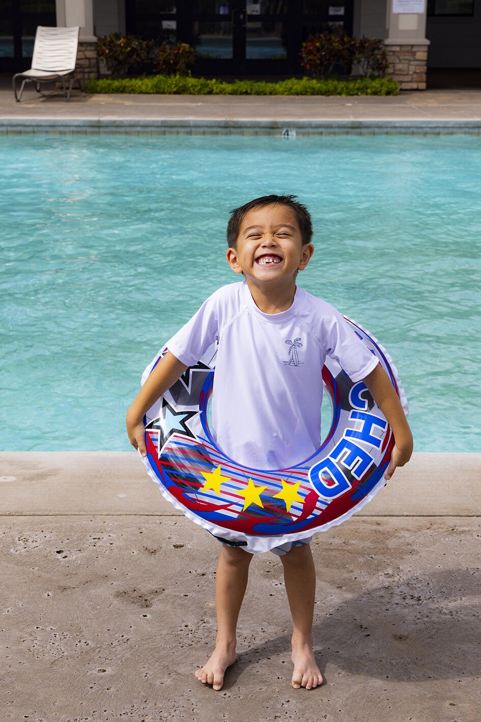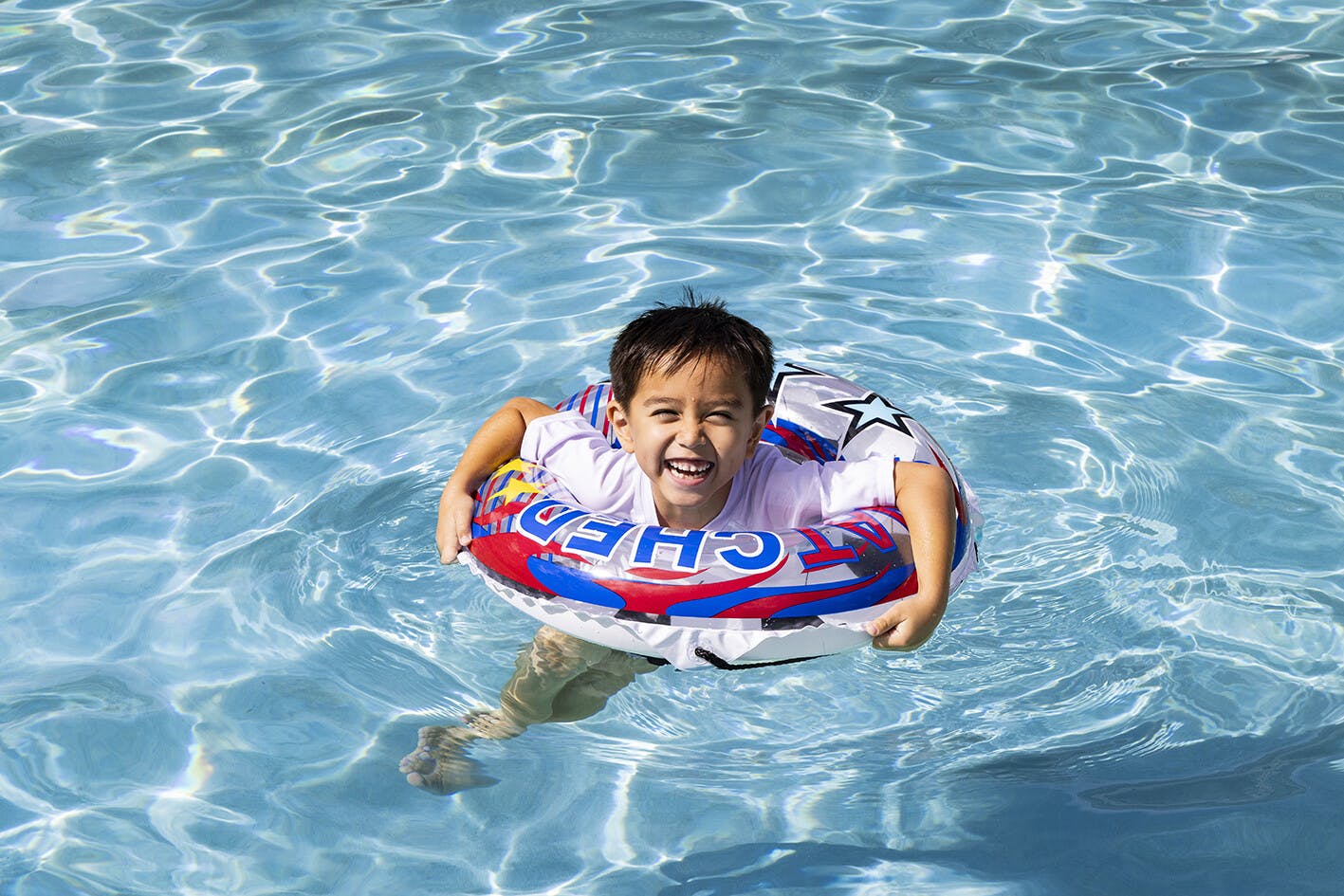 対象年齢4歳~8歳くらいのお子様に最適!。膨らんだ状態のウキワの内周は約85~90cmです。ロープ付き。空気の注入と排出が簡単!「かんたん空気栓」採用。