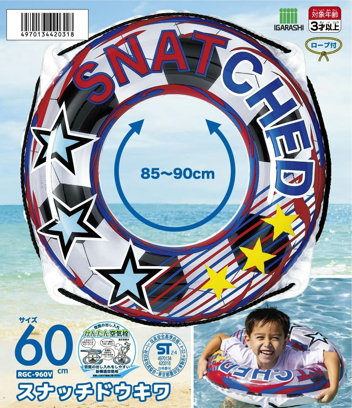 【かんたん空気栓採用浮輪 お子様用 ウキワ 浮き輪 うきわ スナッチド ウキワ 浮き輪 うきわ60cm】 ビーチ 海 プール グッズ 水遊び 幼児 子供 男子 大人 女子 #4970134420318 イガラシ