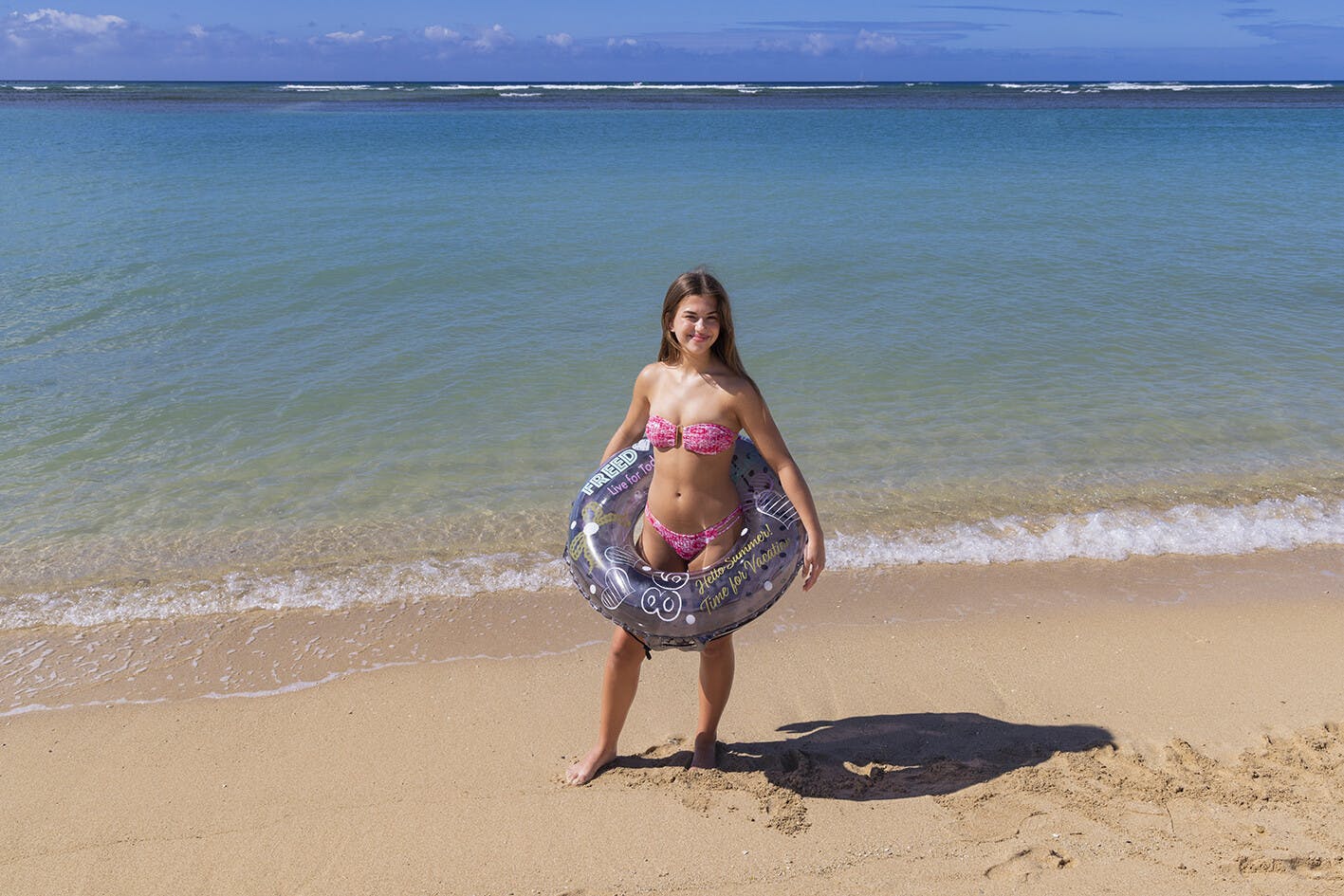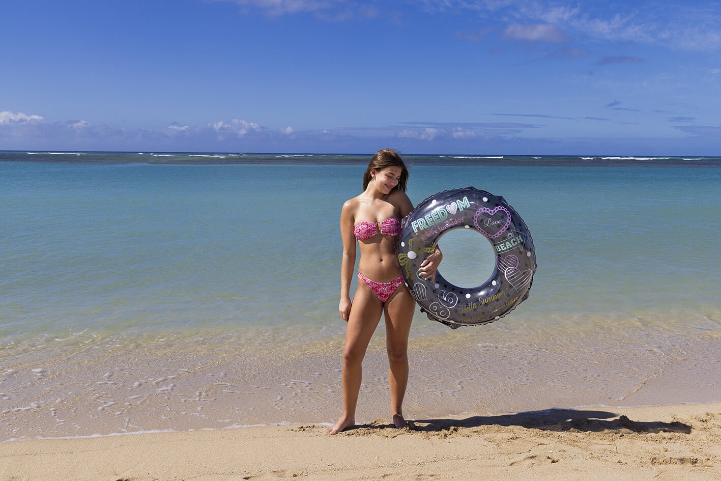 膨らんだ状態の浮輪の内周が約105~110センチの浮輪です。対象年齢12~17歳くらいのティーンに最適。かんたん空気栓装着商品。ロープ付