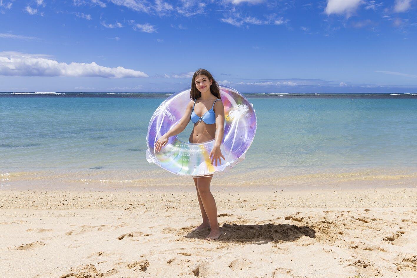 膨らんだ状態の浮輪の内周が約150~155センチとかなり大きめな浮輪です。大人が二人入れるほどの大きさです。かんたん空気栓装着商品。ロープ付