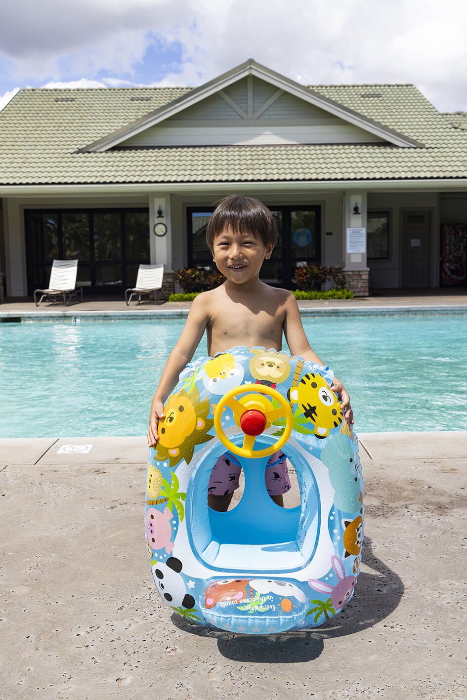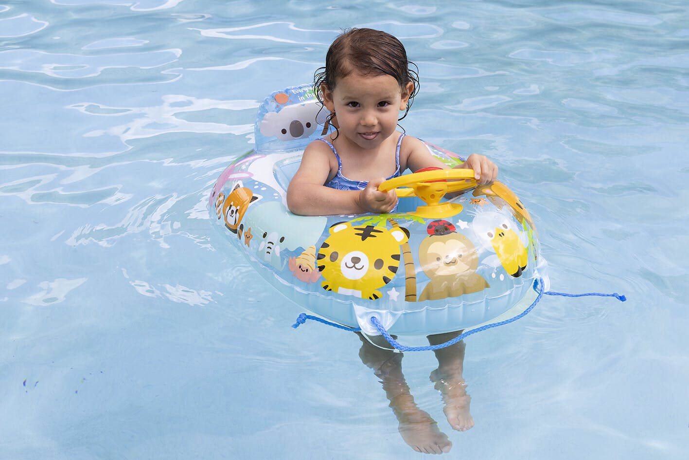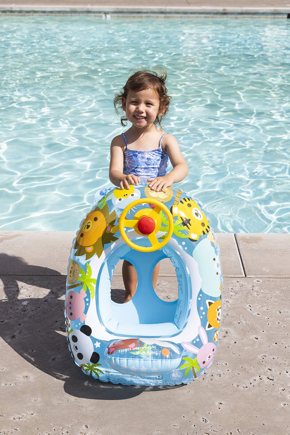 対象年齢1.5~3歳未満。乳幼児のお子様が水に落ち込まないよう浮輪の内側に座が付いたタイプの浮具です。ハンドル付きのボートタイプ。