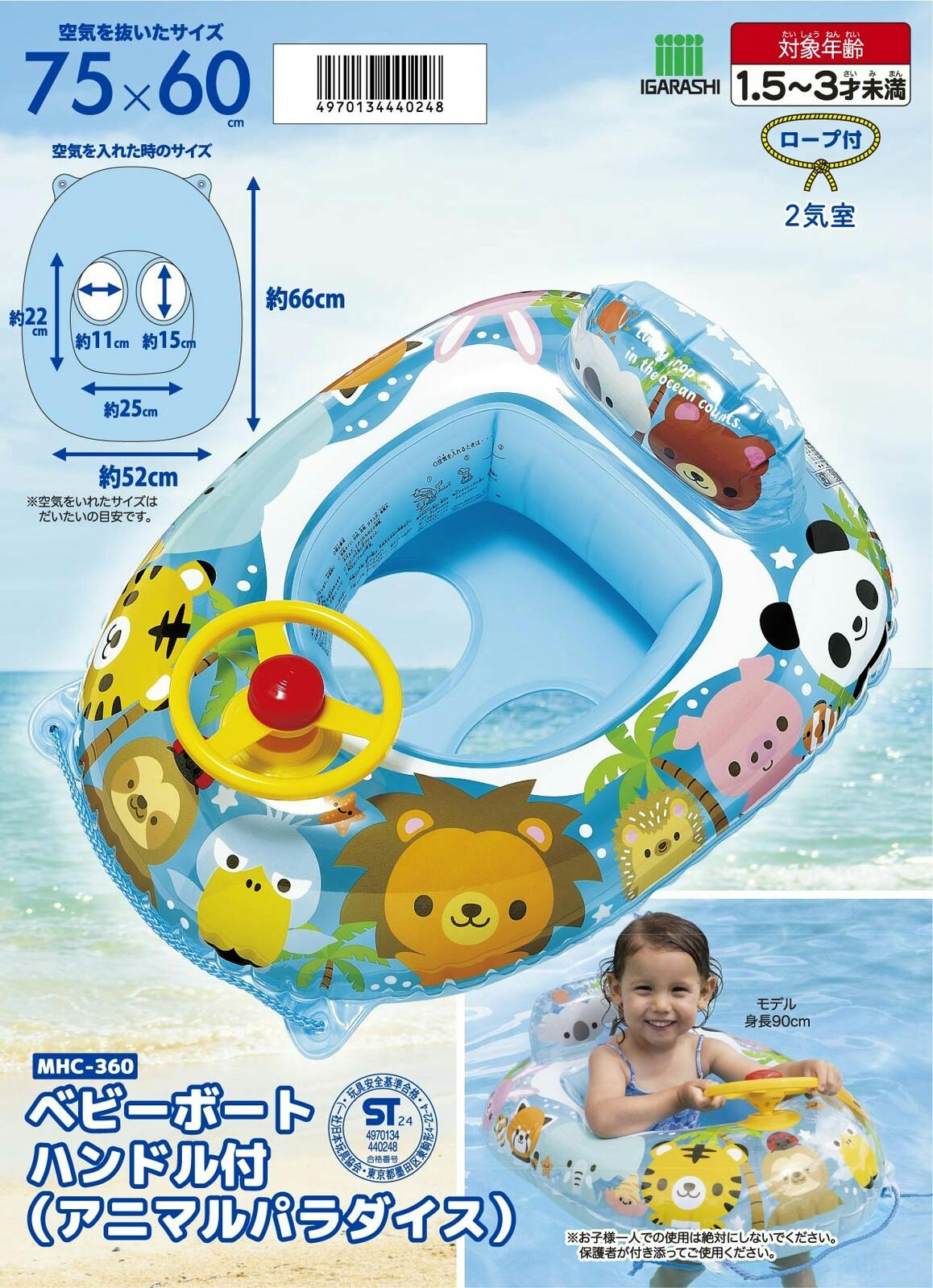 【座付浮輪 ベビーボートハンドル付(アニマルパラダイス)】 ベビーでもこれがあれば安心 #4970134440248 イガラシ