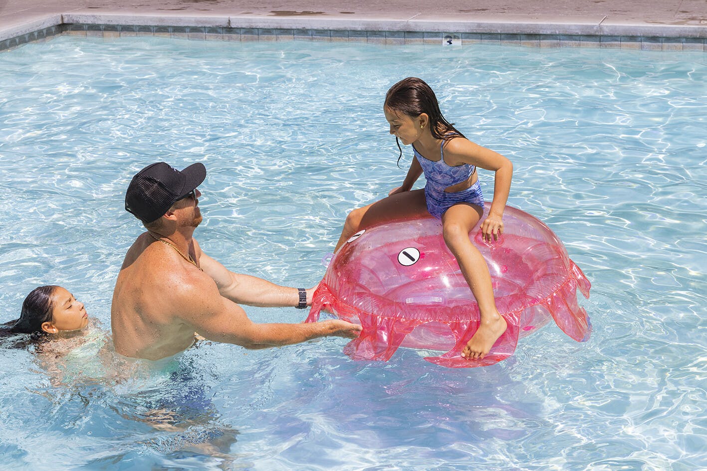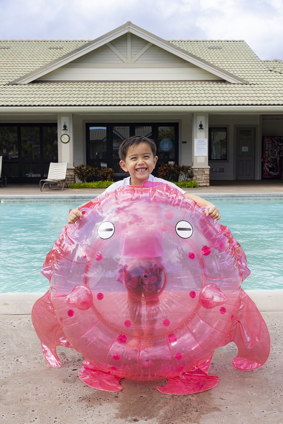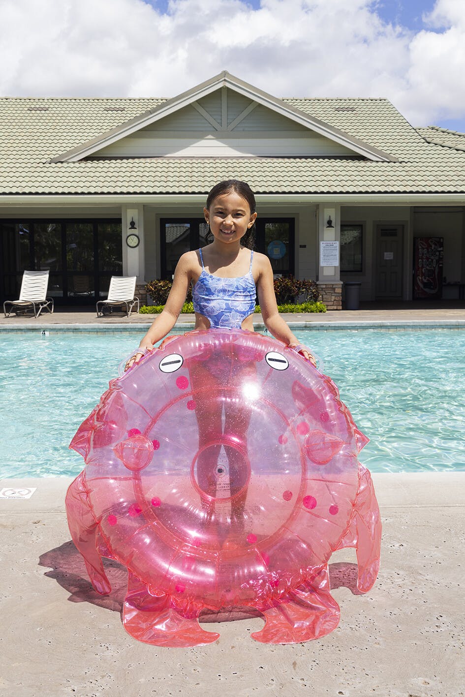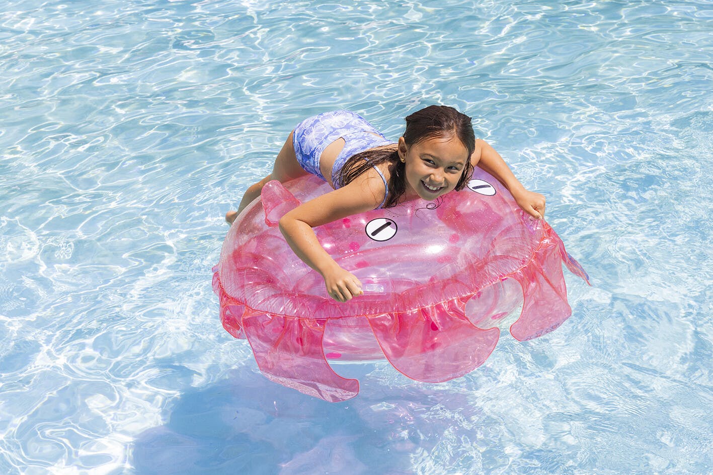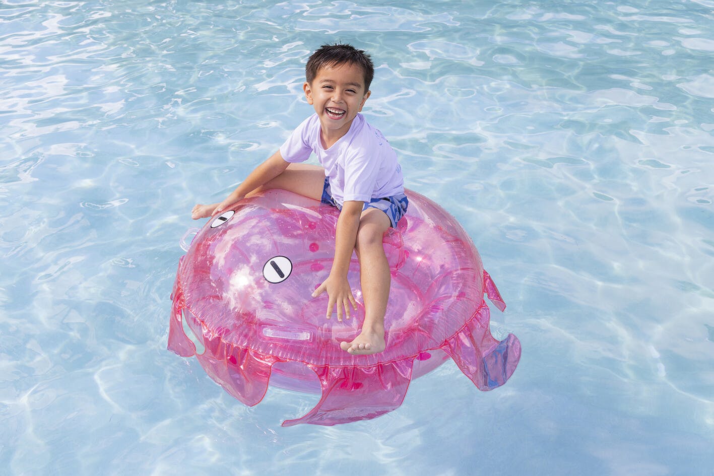 子供に大人気!メンダコをモチーフにしたユニークなフロートです。全長約130センチ。かんたん空気栓大装着商品